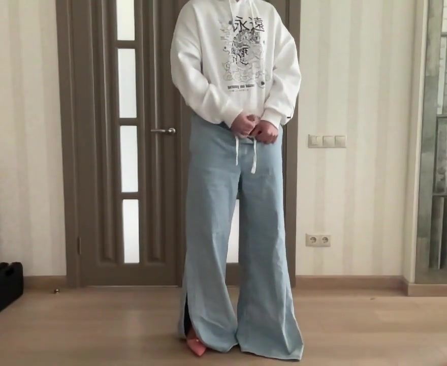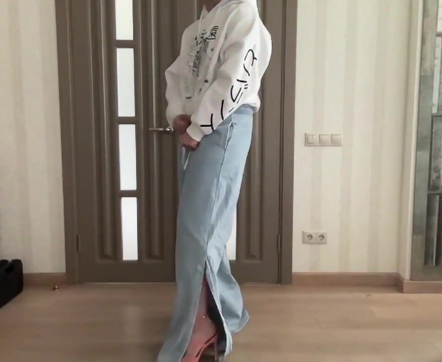 Tranny is dancing in new palazzo bootcut flared jeans and white hoodie on high heels. I will open my sissy mouth today in the restaurant toilet and eat cum of strangers together with my girlfriend.