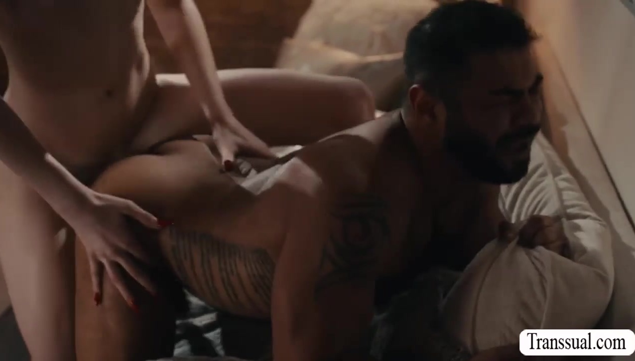 Fat dude massages the legs of his shemale stepdaughter.After that,they get horny and he sucks the tranny cock of his TS stepdaughter.In return,she licks the ass of her stepdad first before she barebacks it so deep and hard.