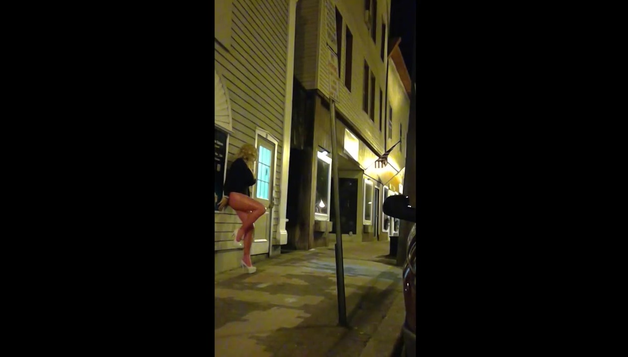 walk in town and roadside solicitation of a sissy in a tramp's garment, PVC top an...