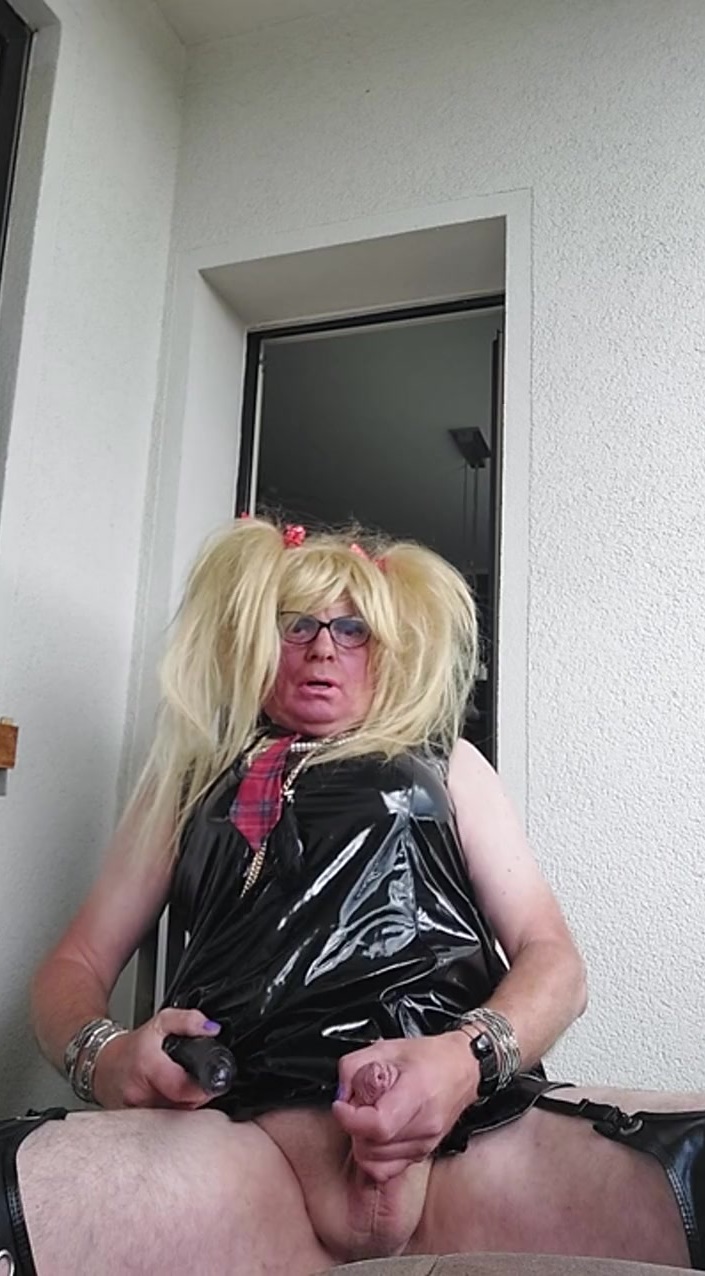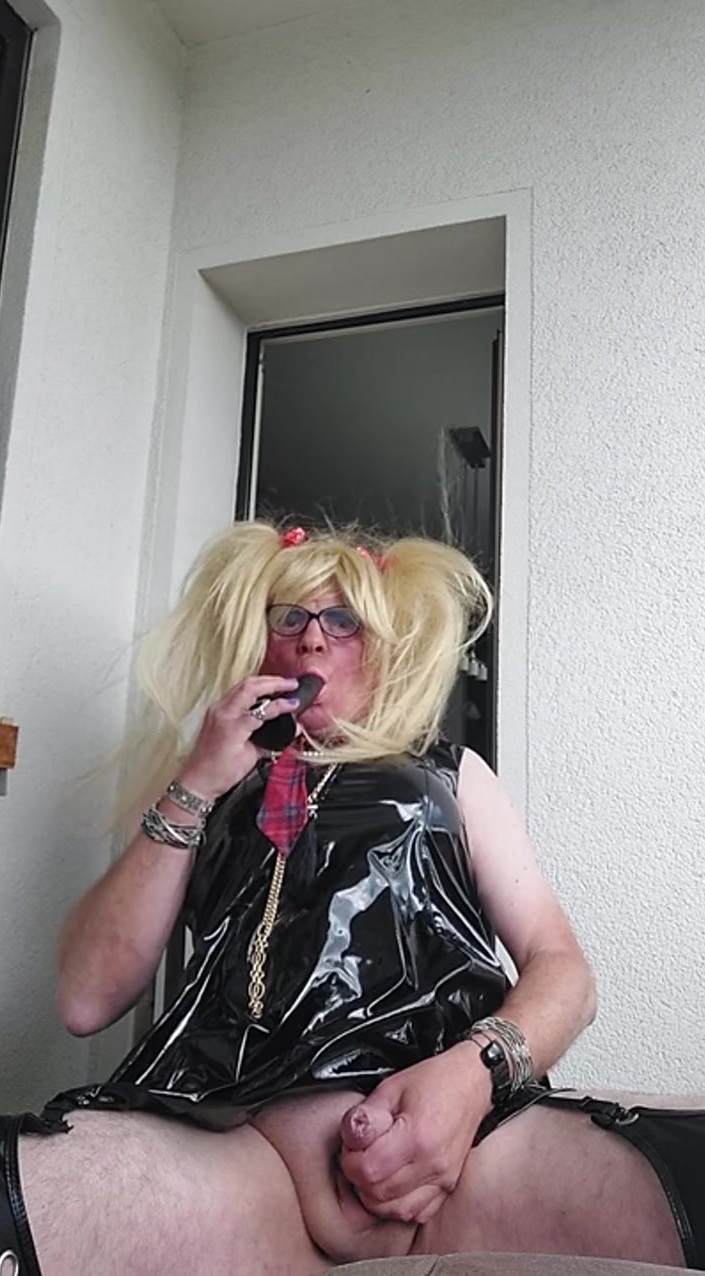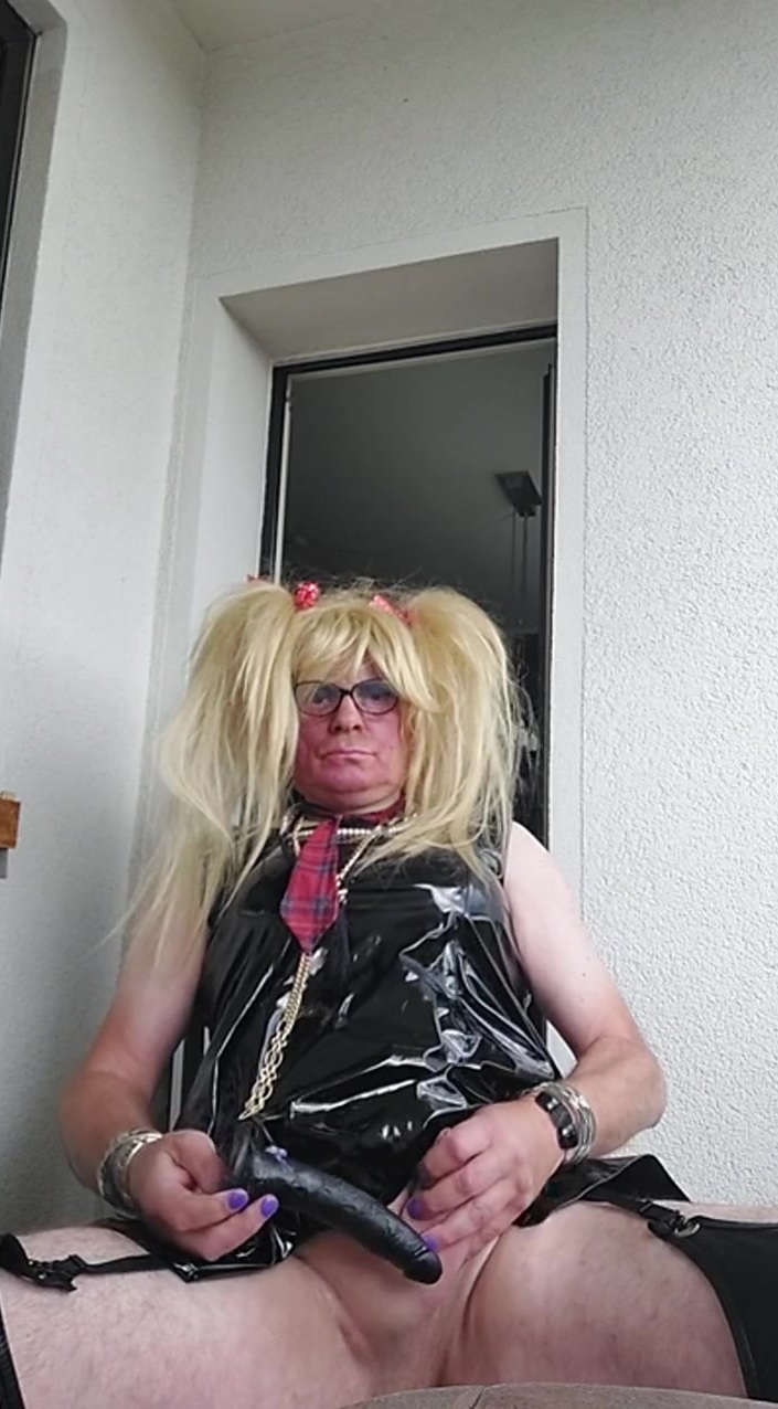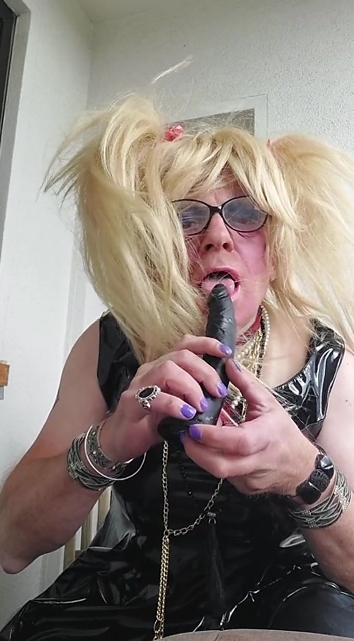 Sasha Earth transgender tart tart marionette on the couch humps her monstrous bum ...