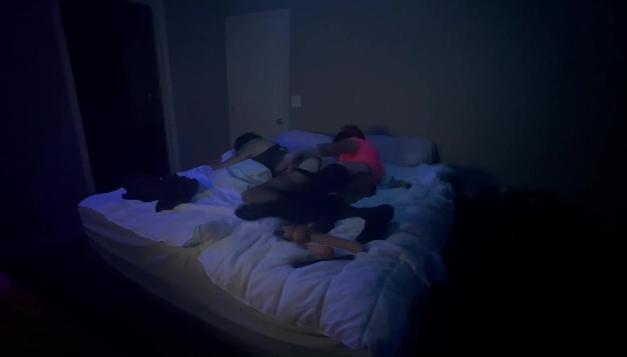 Sissy Stepsisters Fuckin' Away Under The UV-A lights At Home