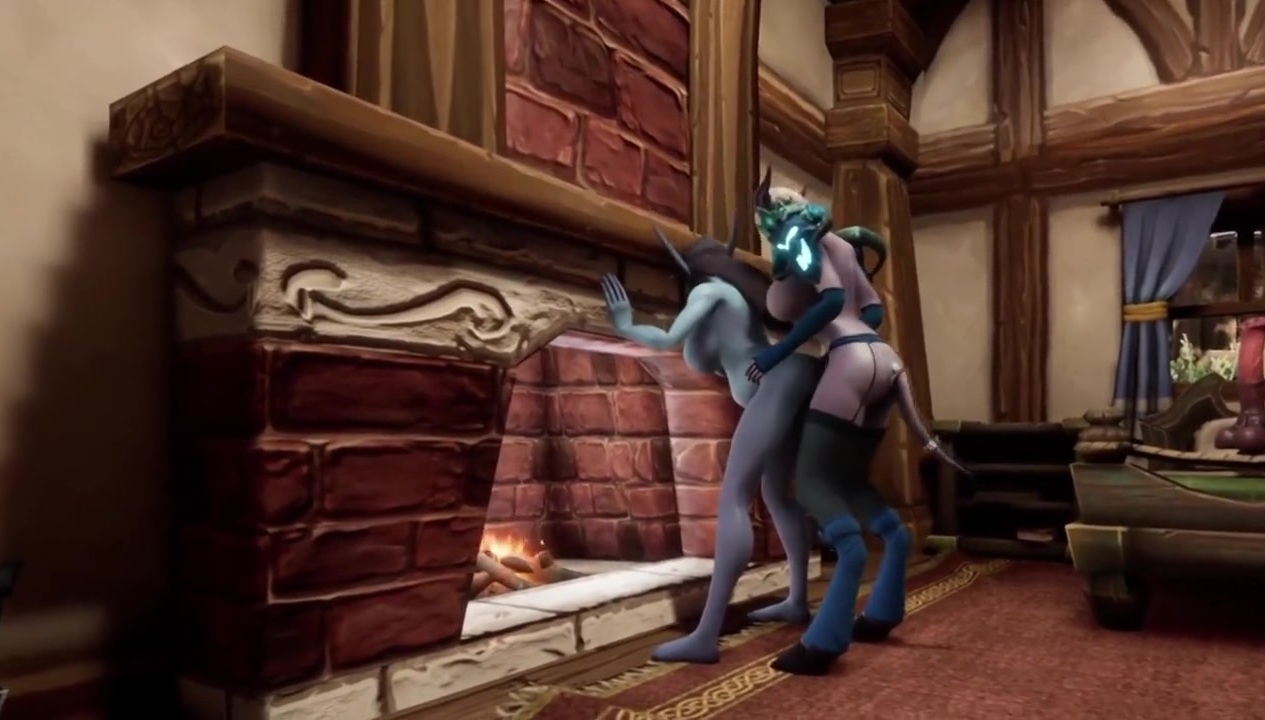 In the World of Warcraft in a tiny house a Shemale Draenei Demon futanari Fucks Pregnant night Elf's in front of the Fireplace. As this Night elf gets her ass stretched by a giant cock.