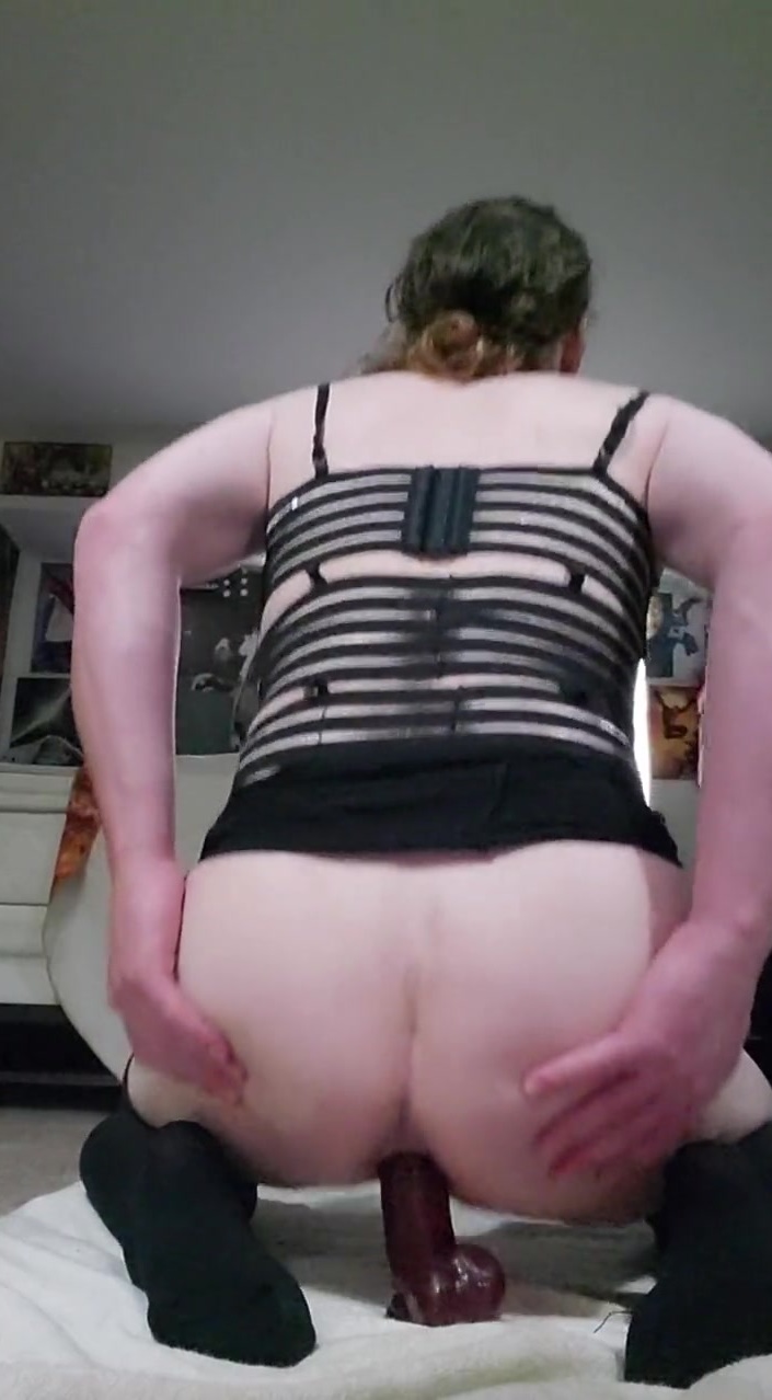 Dumb biotch attempts to rail a fake penis with her forearms fettered to her dog co...