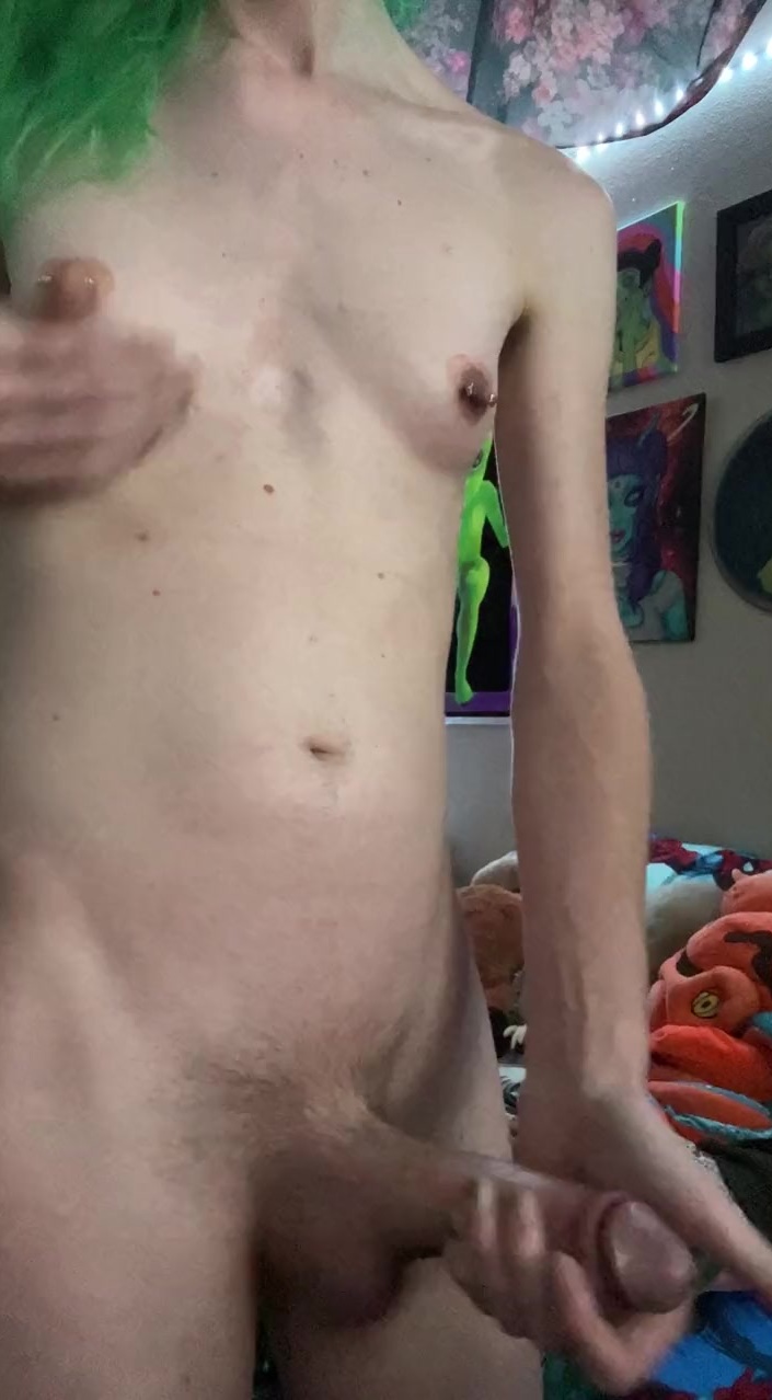 its that time of the month!! time to test out the bounciness of my tits and ass!!! i plays with my nipples, spank my ass and also get kinda hard so i stroke my girl cock a little bit too.