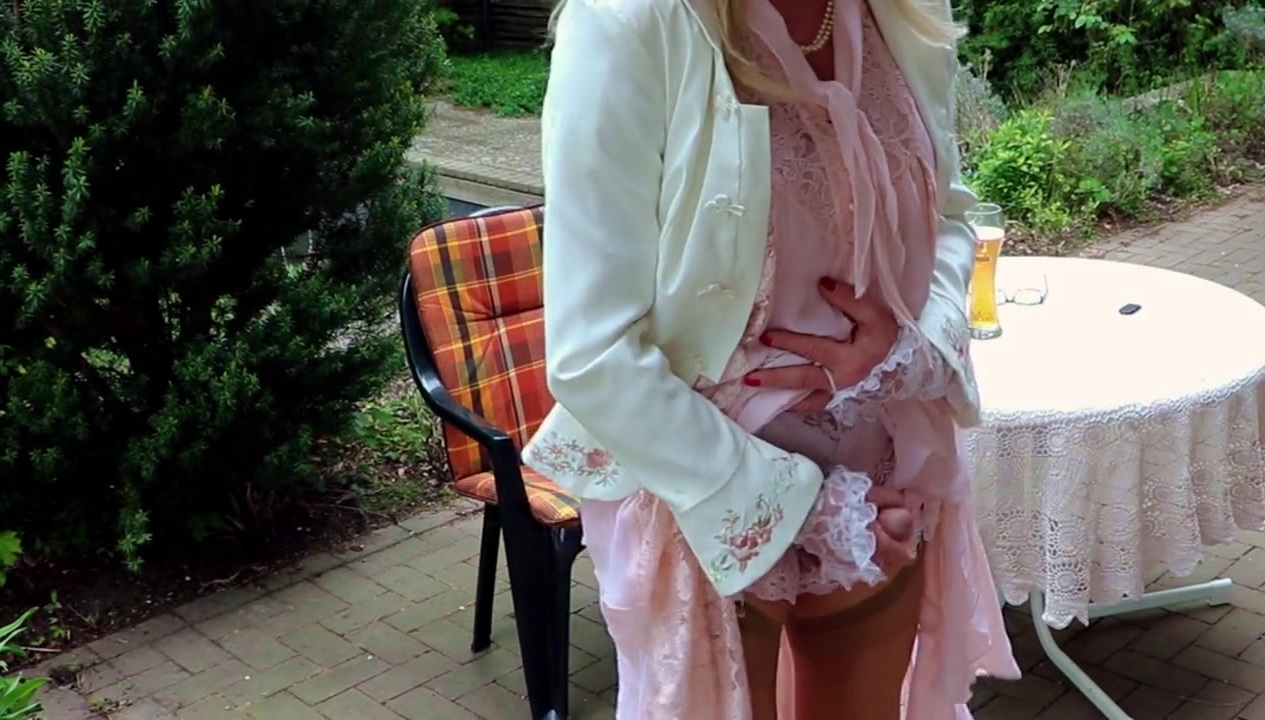 Draining Antique COUGAR - money-shot in a sheer gown and antique underwear