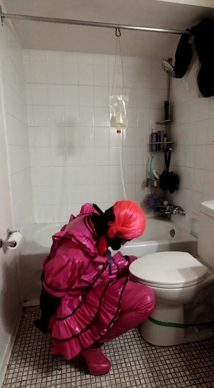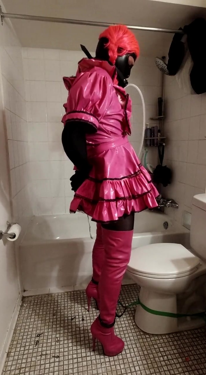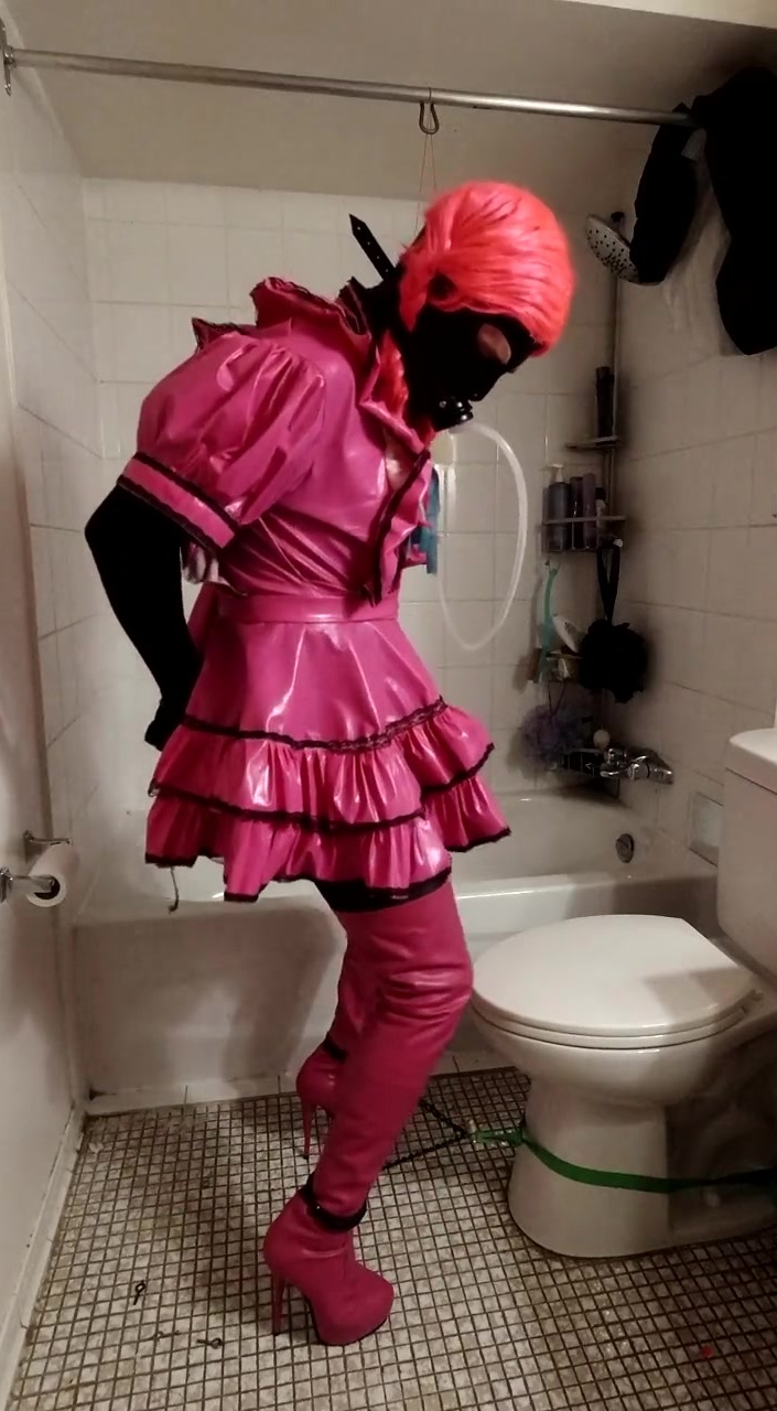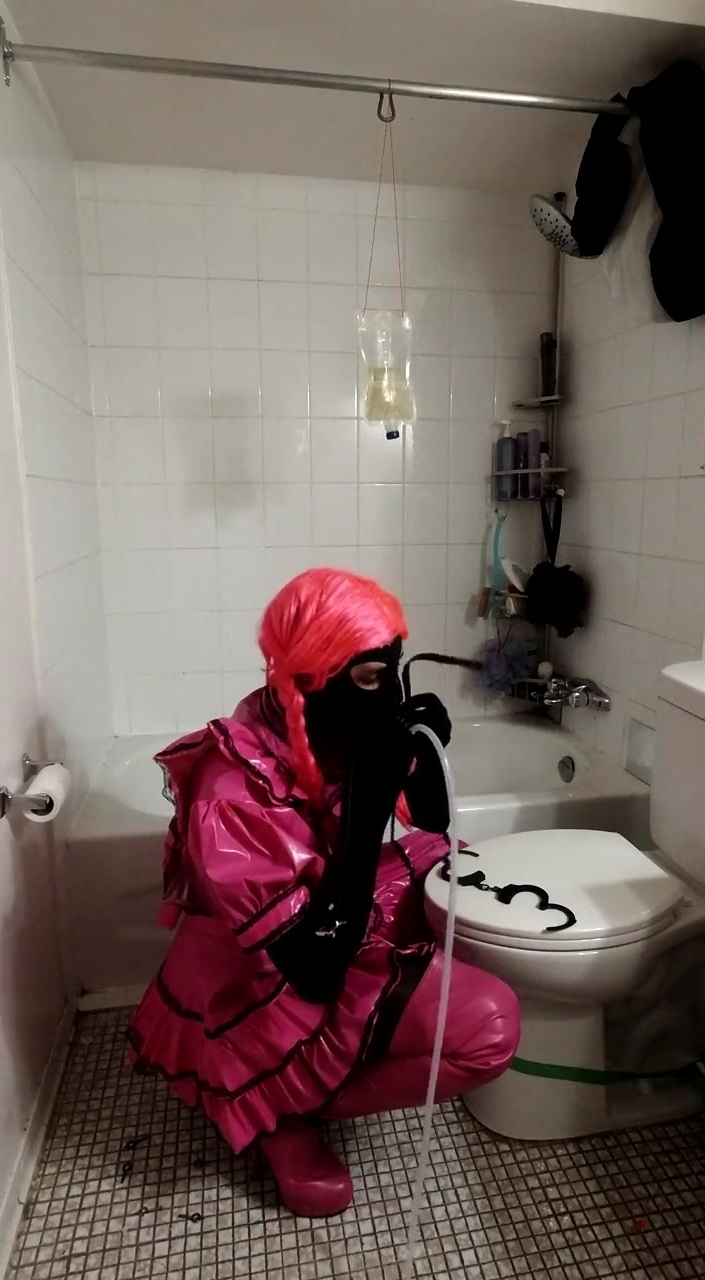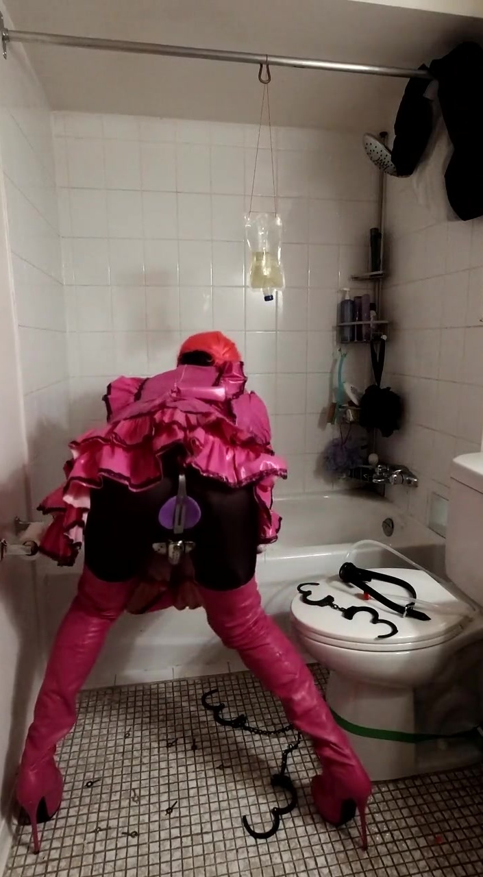 ankles cuffed to the toilet, handcuffed behind back standing, I have the option to kneel down n try and grab 1 good handcuff key in 10, but once my gag is below the bladder of urine it starts to flow