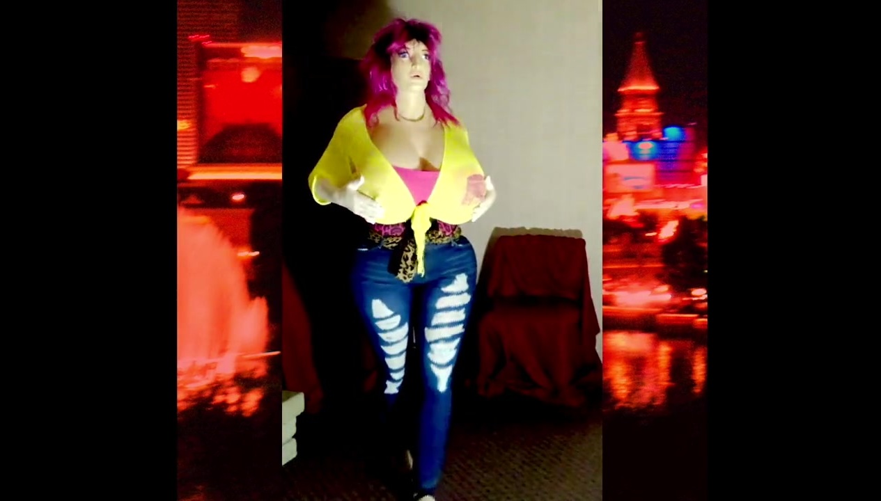 Juggsy is a female masking fetish rubber doll. This sex doll models her big booty in denim. Her 21xl S Cup breast forms in a pink spandex tube top are perfect for epic bouncing boobs scenes!
