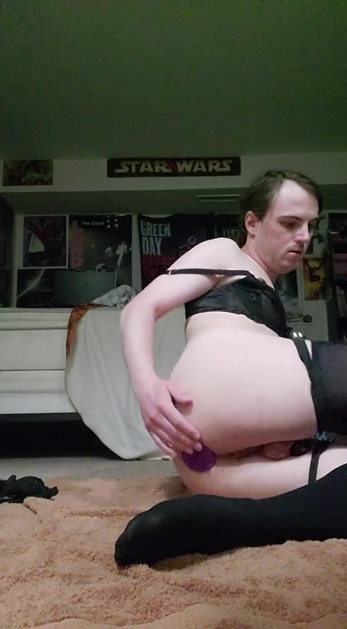 Sissy plays with bum butt-plug and taunts manhood