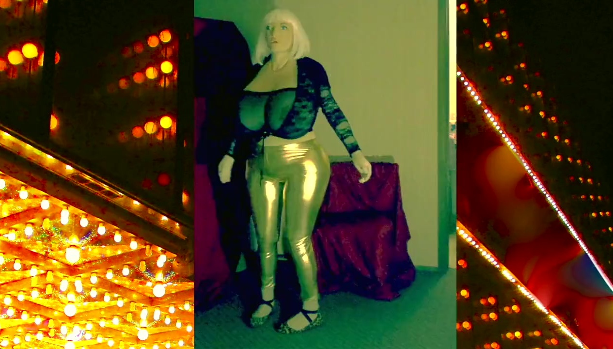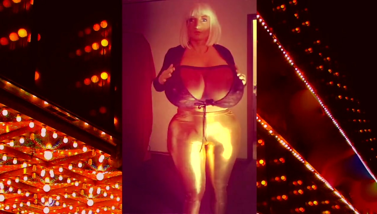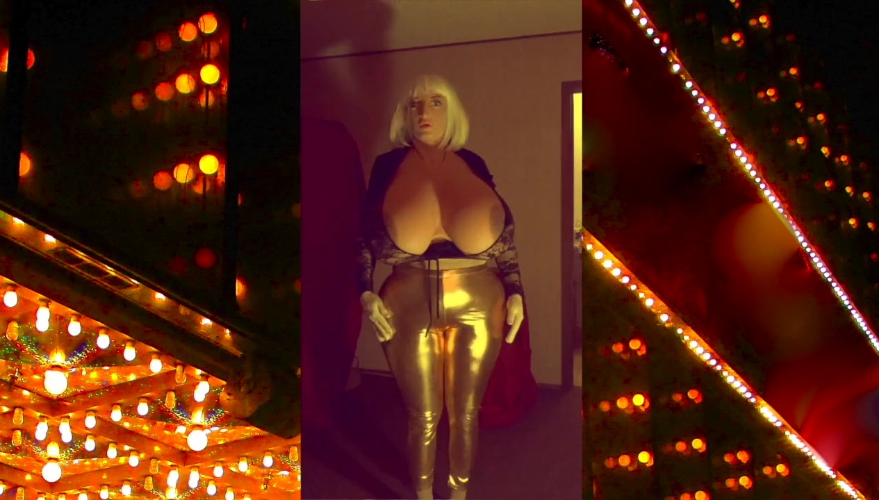 Juggsy Ho Doll is a female masking rubber doll. Juggsy performs striptease with her silicone 21xl 16kg S Cup breast forms in a sheer black tube top with shiny gold spandex booty pants.