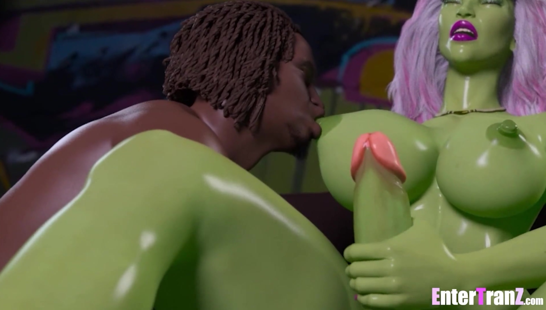 Futa Alien gets group-fucked by BIG BLACK COCK