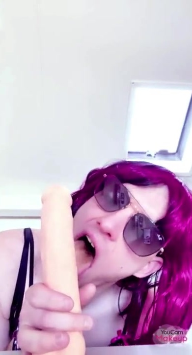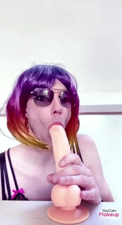 Lusty sissy takes good-sized faux-cock in her jaws