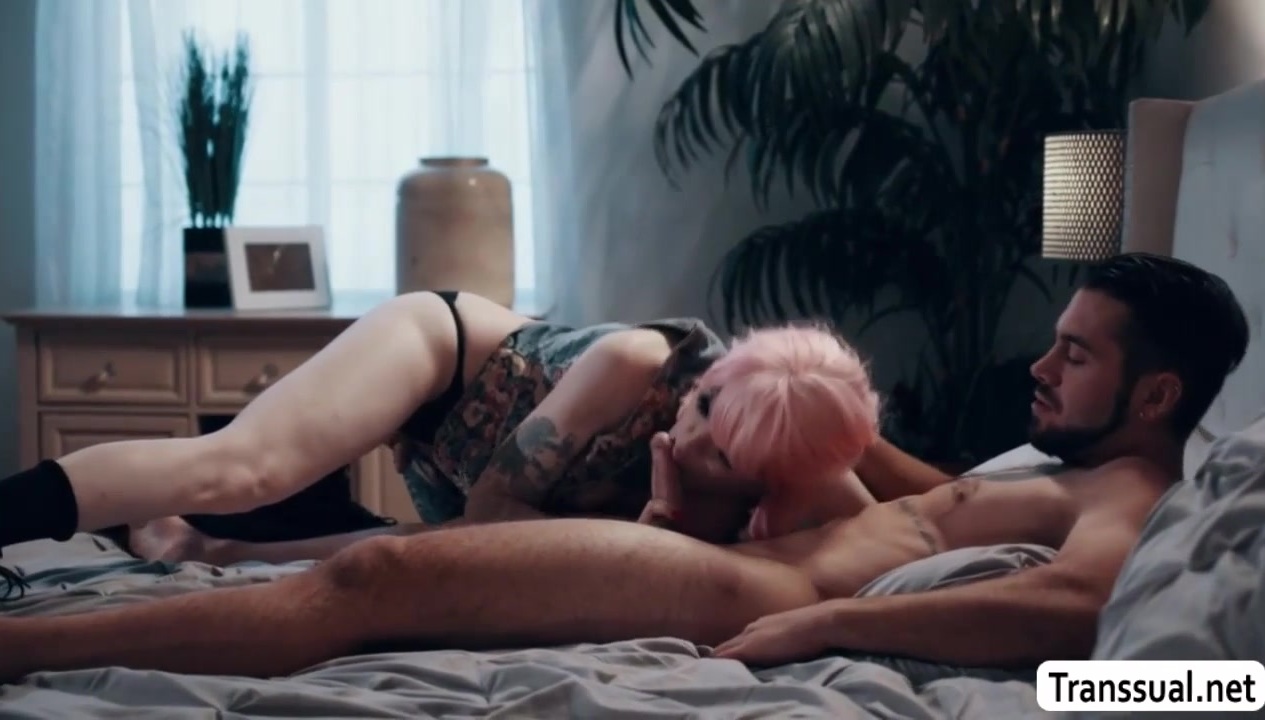 Huge-Boobed transgirl lets sad stepbrother no condom her humid a-hole
