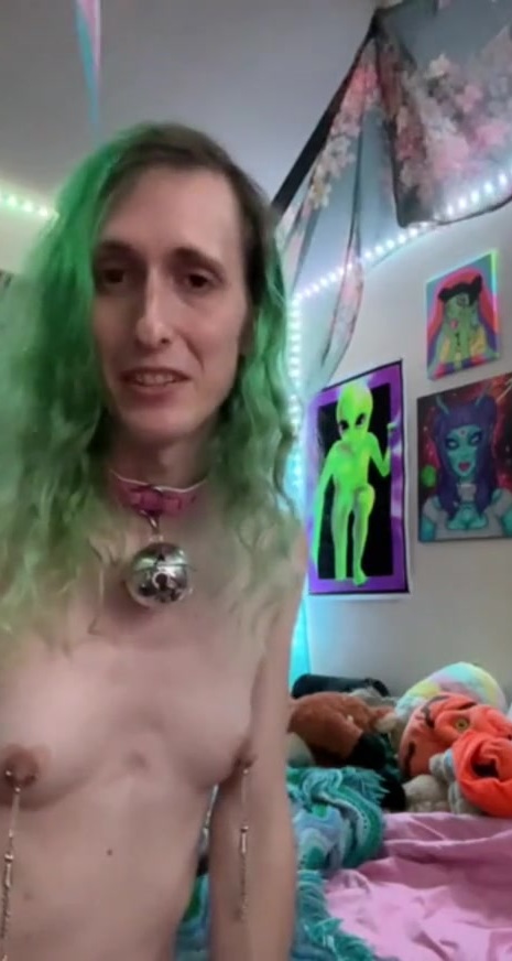 its been 11 months since i have started HRT and i have had plently of good progress on my transition. in this vid im wearing my collar with oversized bell, and nipple clasps that make them super sensi