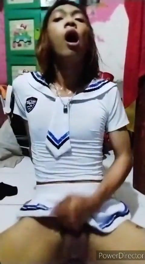 Hi tranny - Super-Cute virginal looking Japanese t-model gets milky fuck-stick