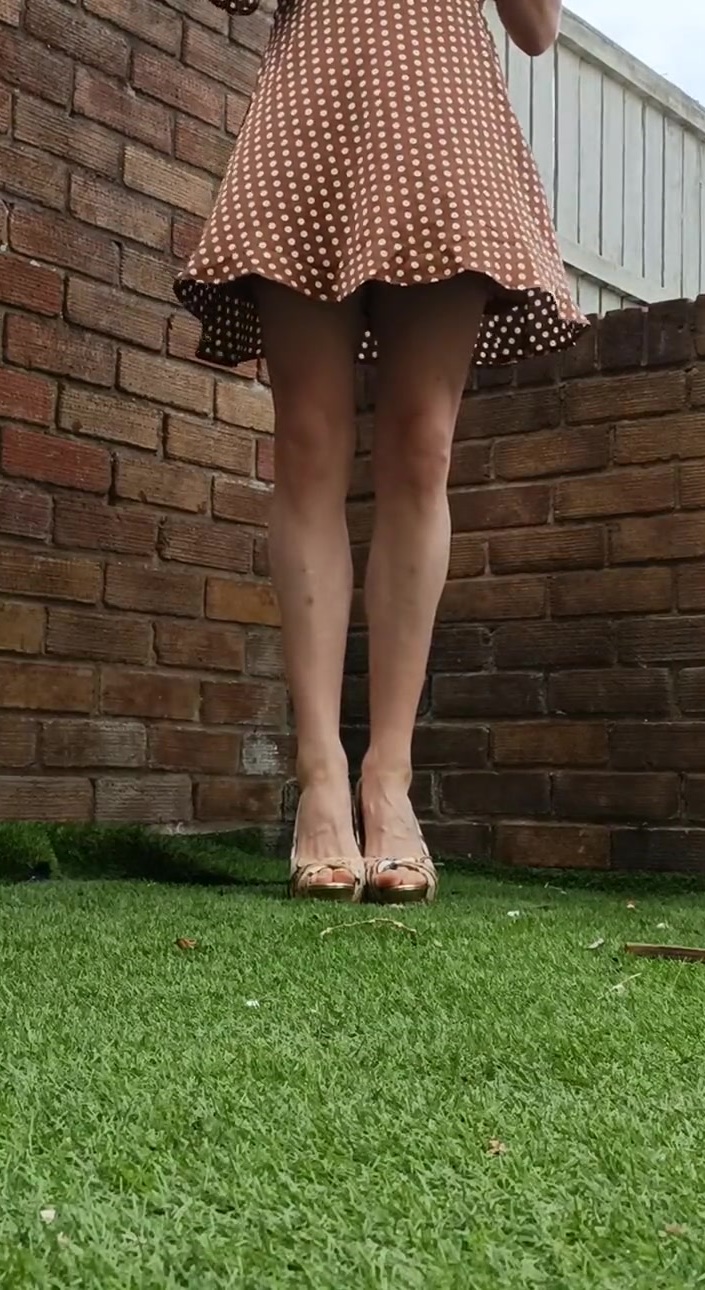 Crossdresser smoking in the wind, skirt blowing around all over, what might the neighbours see?