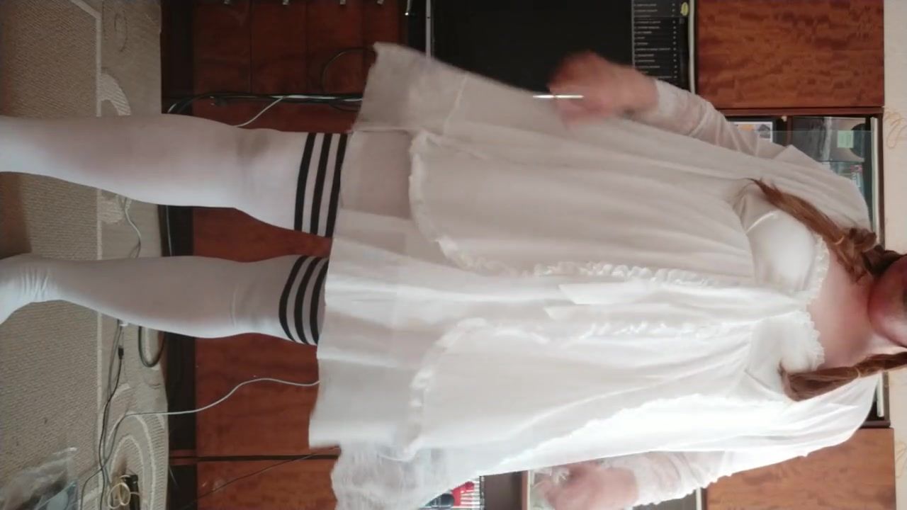 sissy Aleksa in nightdress sensing a ferocious ejaculation