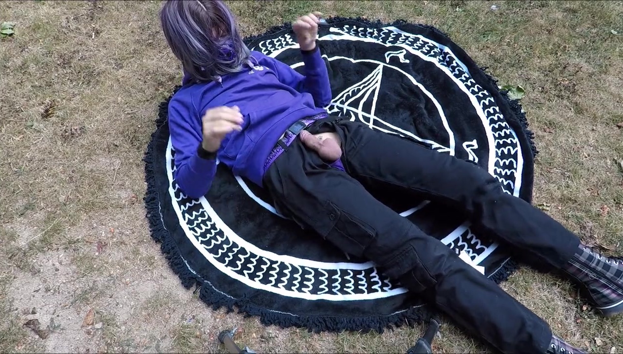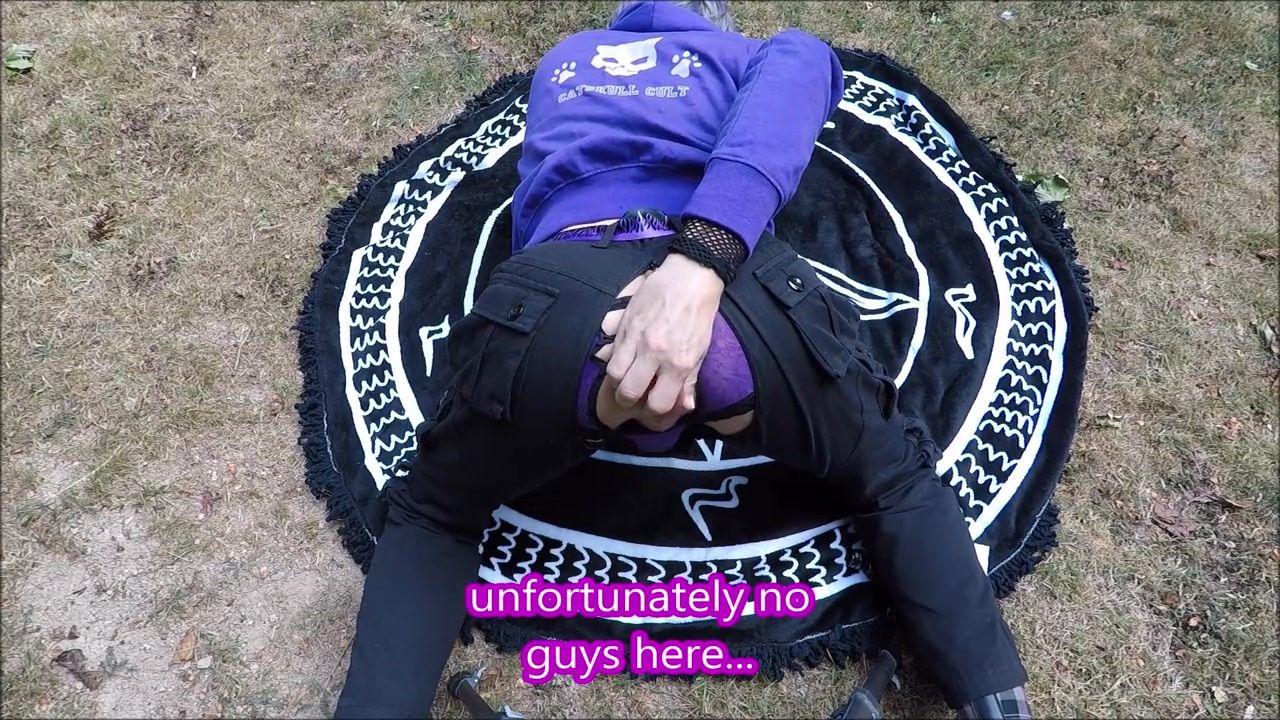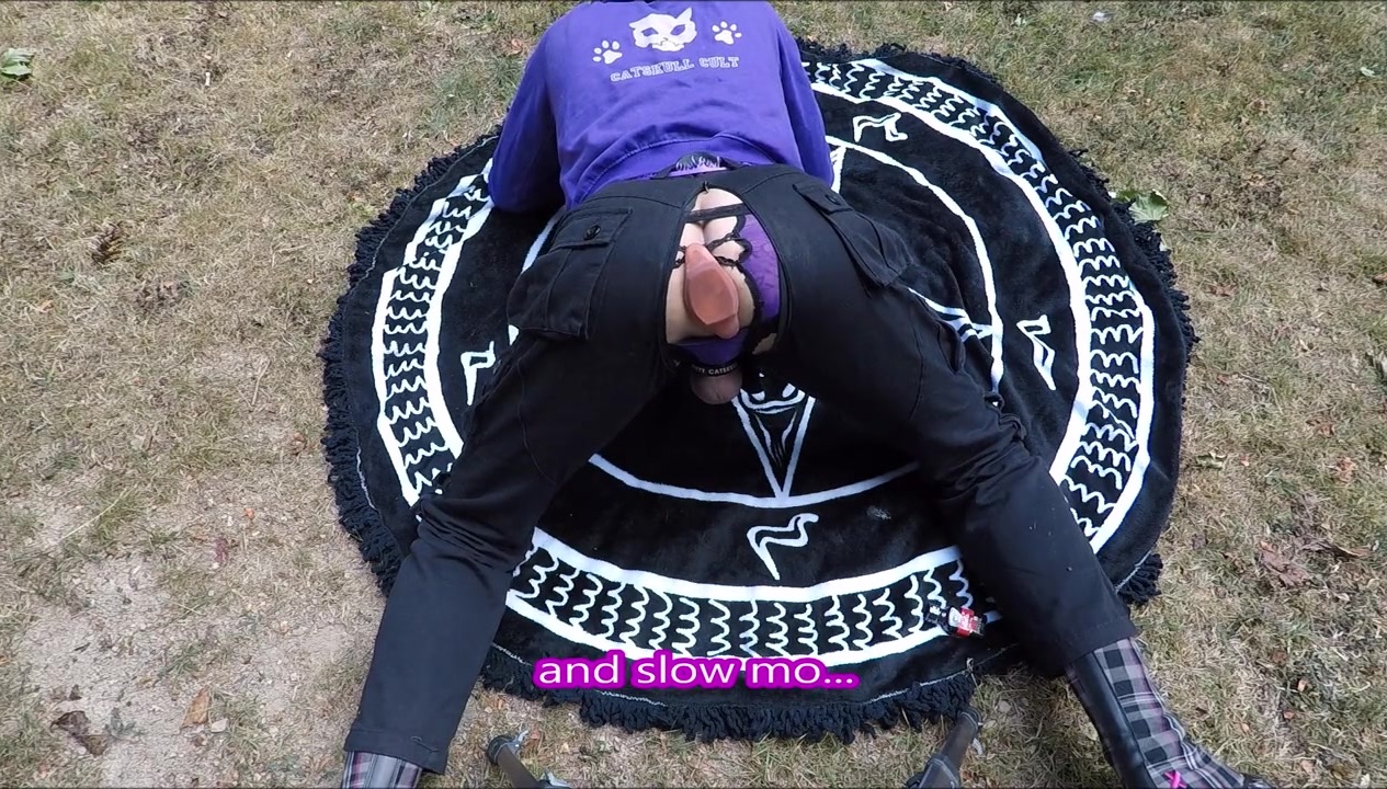 Kitty Catskull insatiable surroundings femboy with backside buttplug in the park