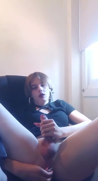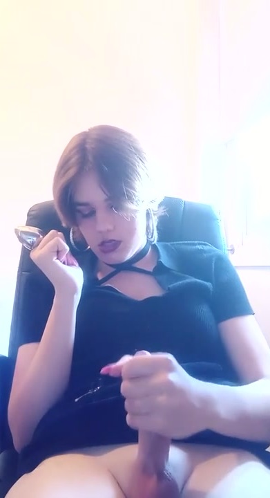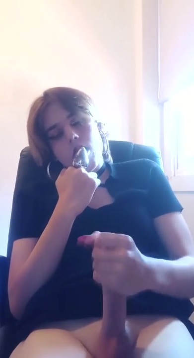 Transgender Princess jack her lil' beef whistle and tongues his own spunk
