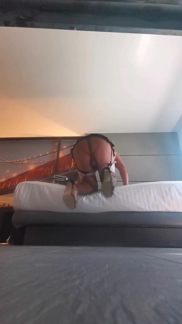 Hot blonde TS Lena Moon dressed in sexy lingerie love teasing and playing with her se