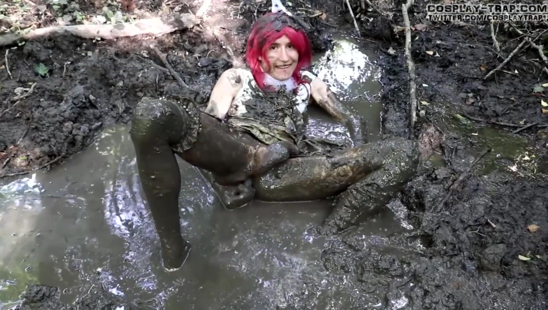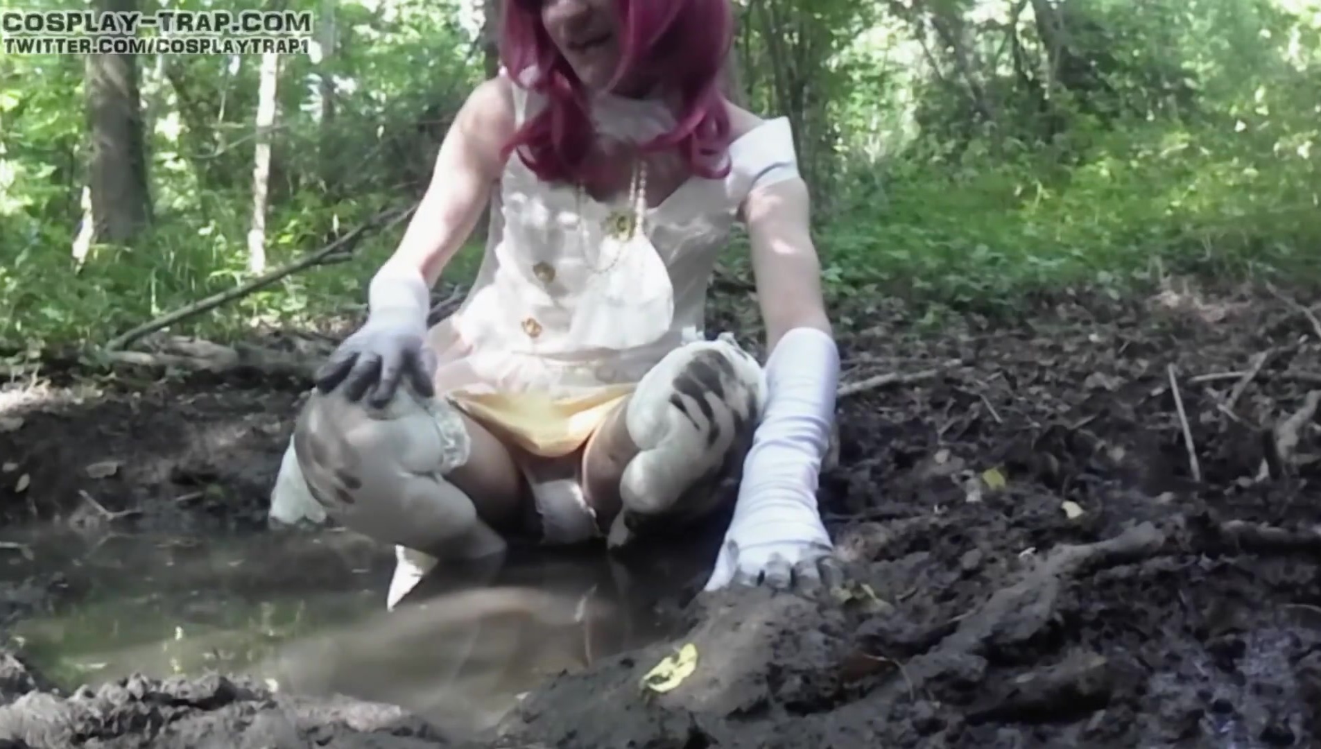 muddy trap costume play paramour Maki bride soiling her sundress and stroking in the mess