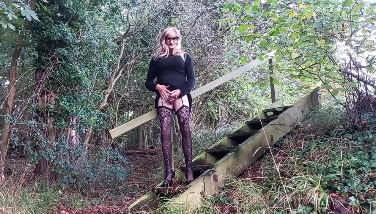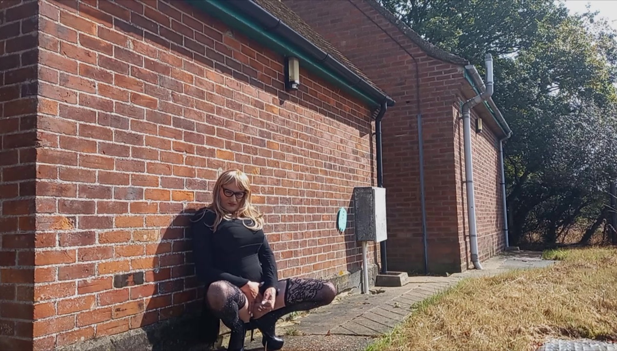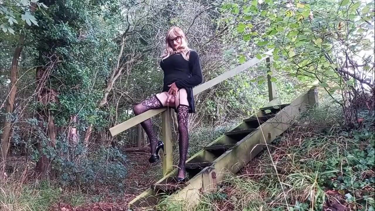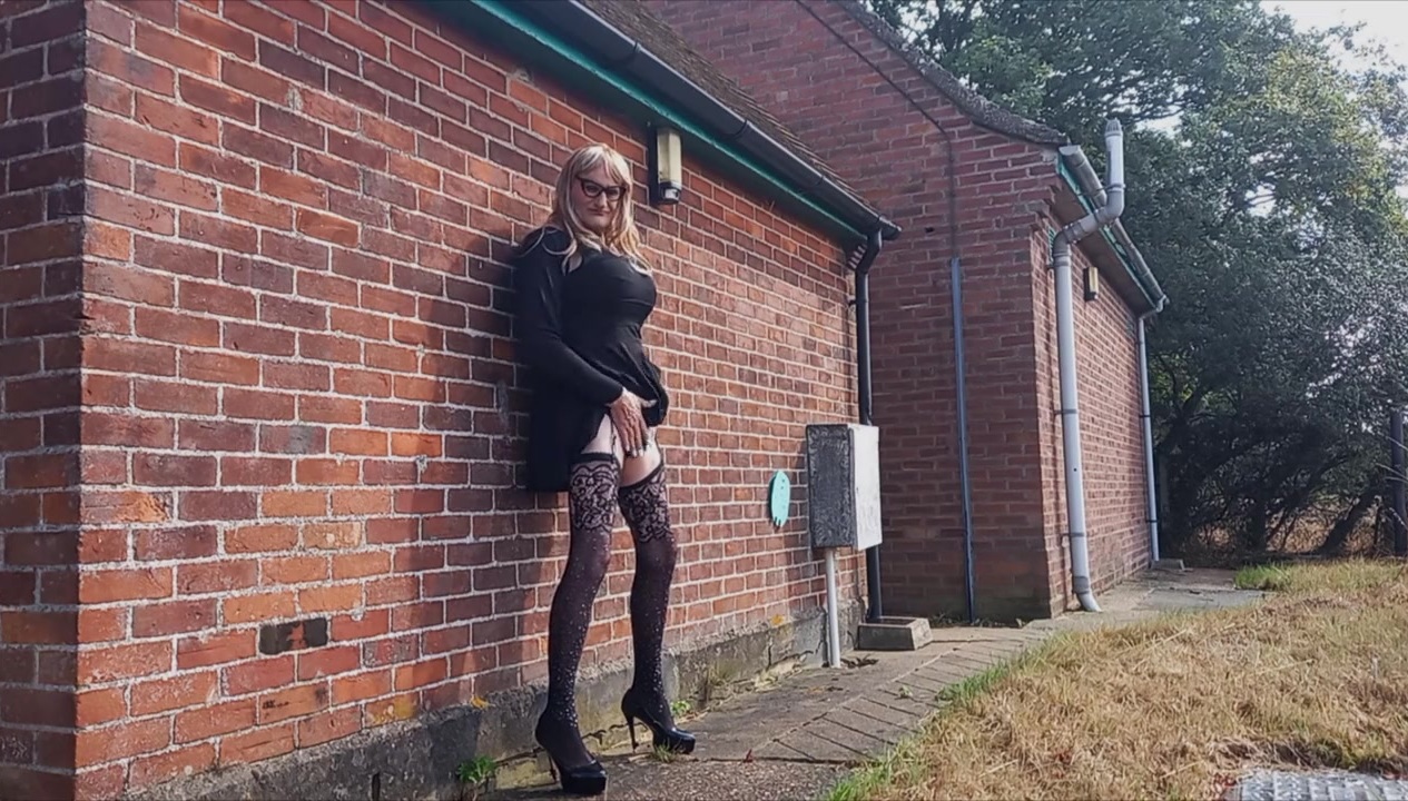 Tranny Gina outdoors cock out pissing, wanking, stripping, playing