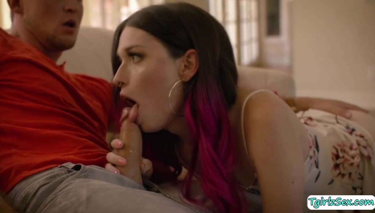 Transsexual Natalie Stone oral pleasure stepbros bigcock and ass-fuck barebacked