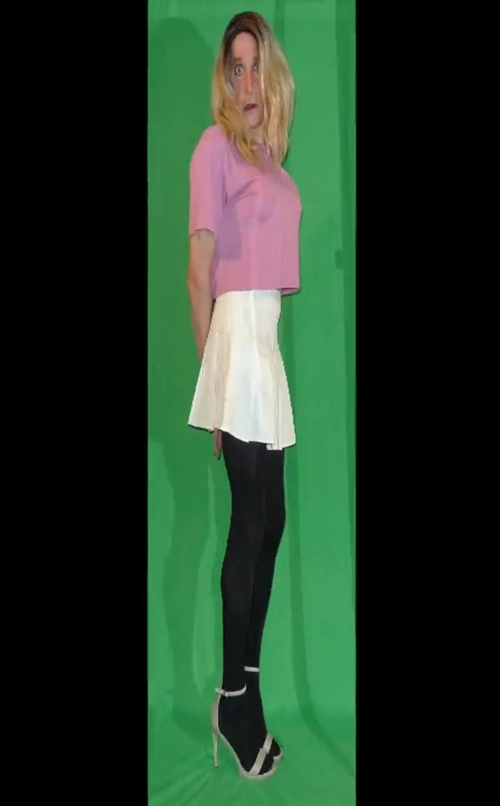 50 faces of super-cute crossdresser Natalie, dresses, skirts, high stilettos, stoc...