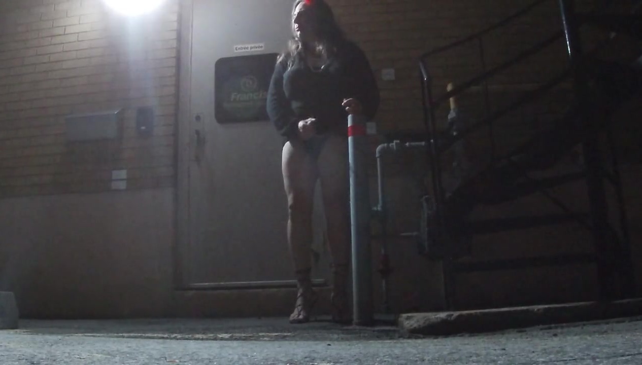 Cougar Sissy solo flick outdoors at night palying with a hosepipe