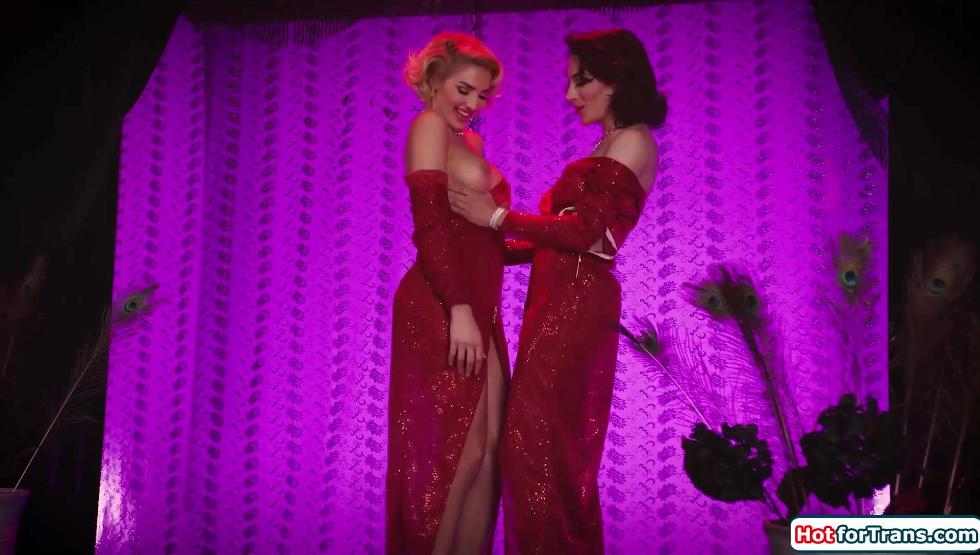 Busty tgirl nightclub dancer Ariel Demure and colleague Kenzie Anne finish the dance and kiss.The babe facesits the shemale and sucks off the brunette trans big cock.All hard the ts sticks her tranny dick in the blondes pussy and bangs her on stage