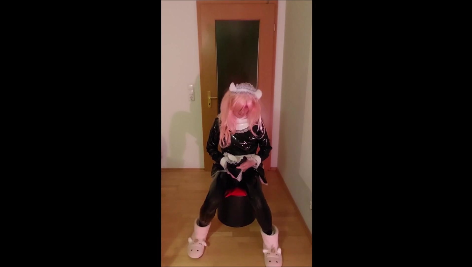 Prettiest Sissy Maid displays her fresh skintight glossy spandex catsuit and spunks on it