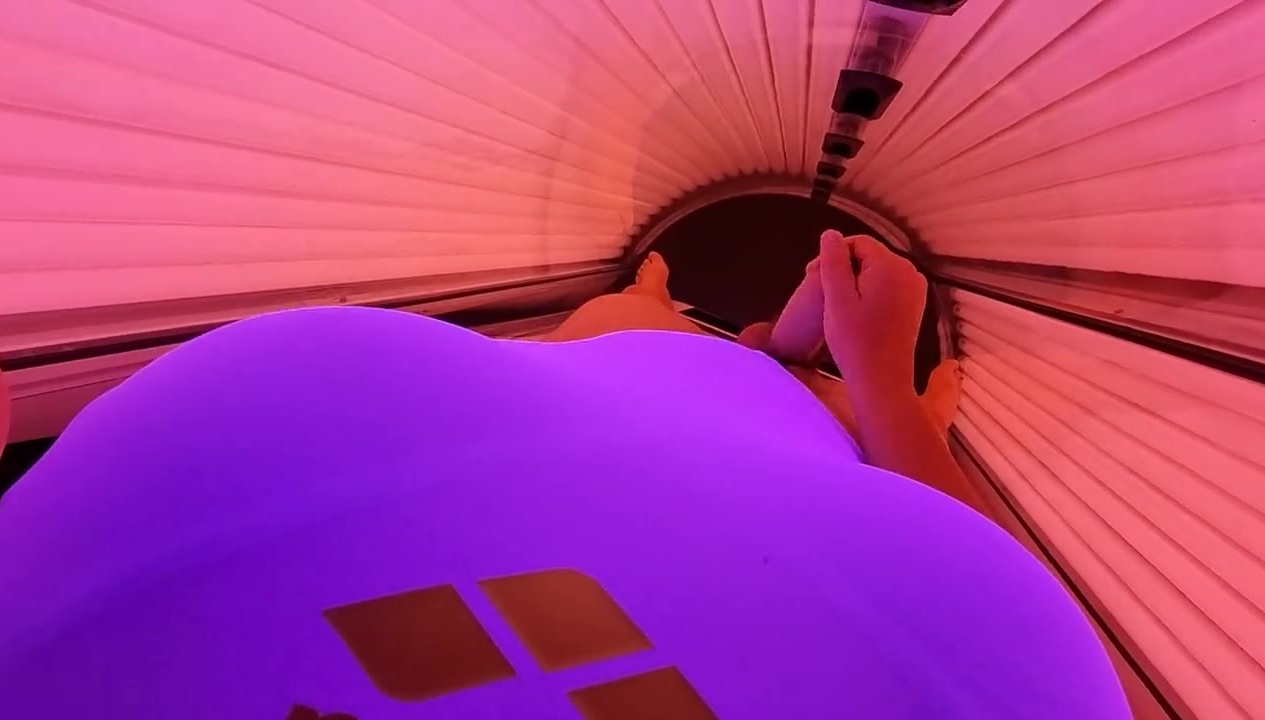 TRANSVESTITE IN ROSY V-CARD BELT IN SOLARIUM SUNBATHING IN G-STRING Swimsuit Marks...