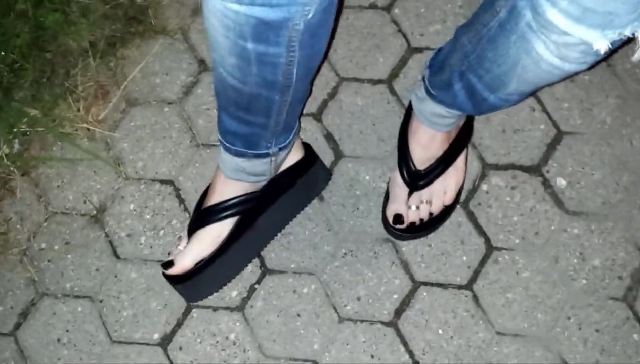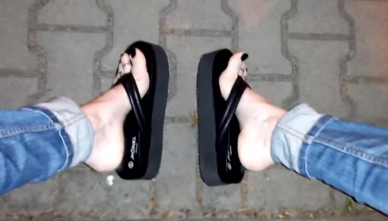 crossdresser entices with her uber-sexy soles in stripper footwear on the street
