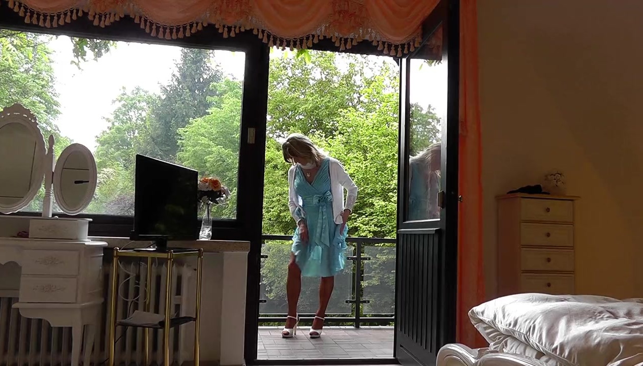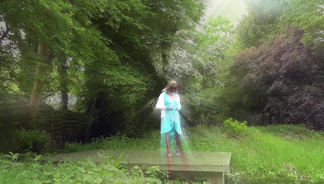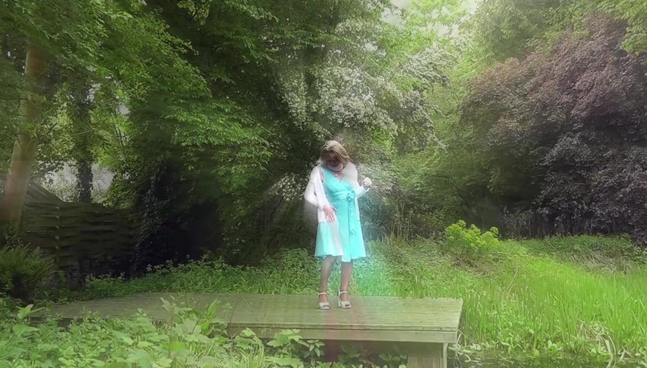 shemale outdoor wanking and cumshot in nylon stockings and silk lingerie