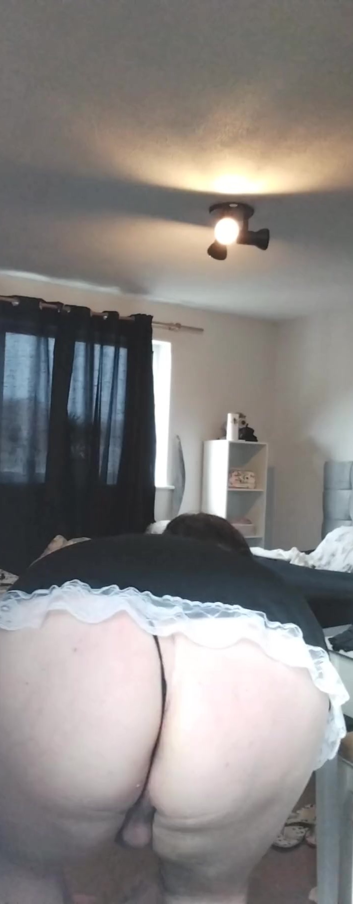 This maid uniform is very pretty, but I feel like my big bouncy tits and massive meaty ass might be just a little bit too big for it. Nevermind, it's not like anyone's going to see me in it. Oh wait!