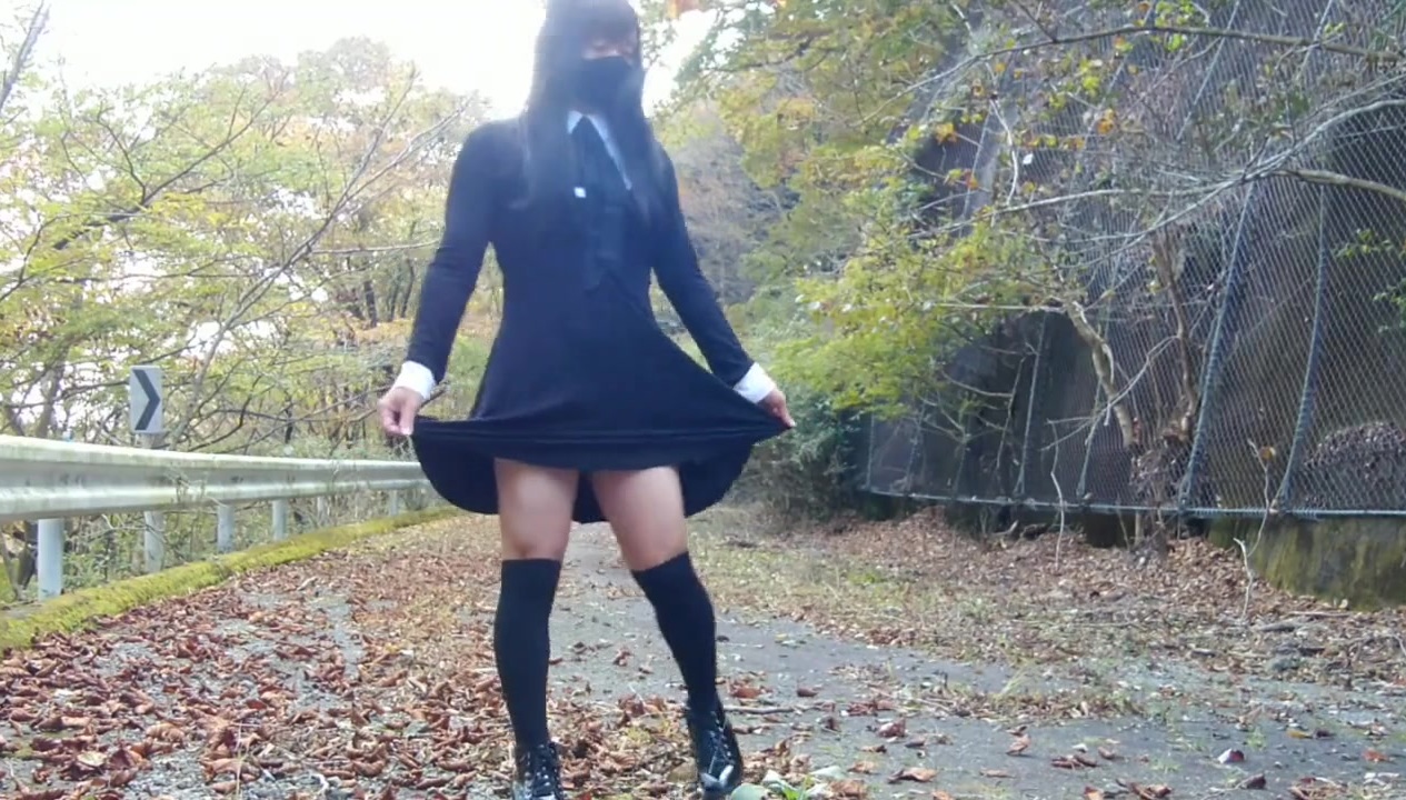 Lara White Sissy showcasing nut and beefstick under miniskirt. Butt jiggling, rod ...