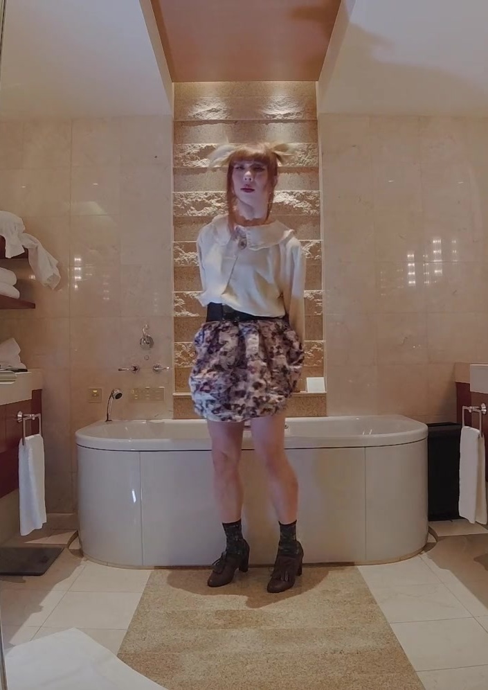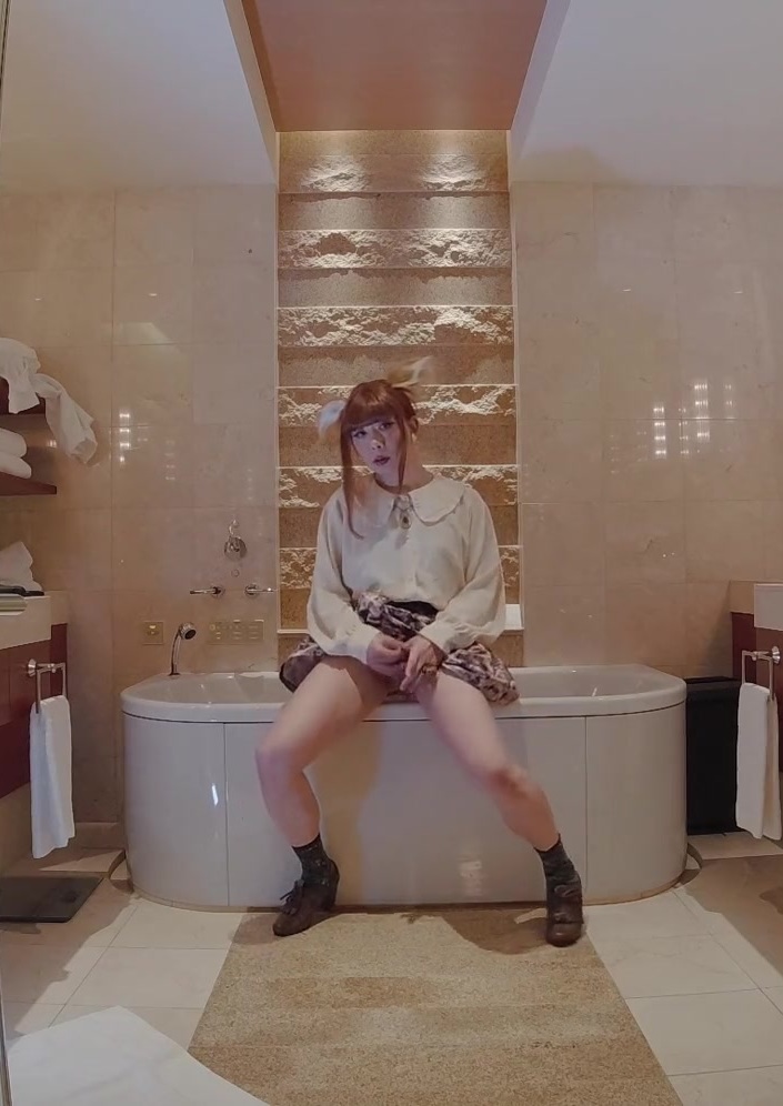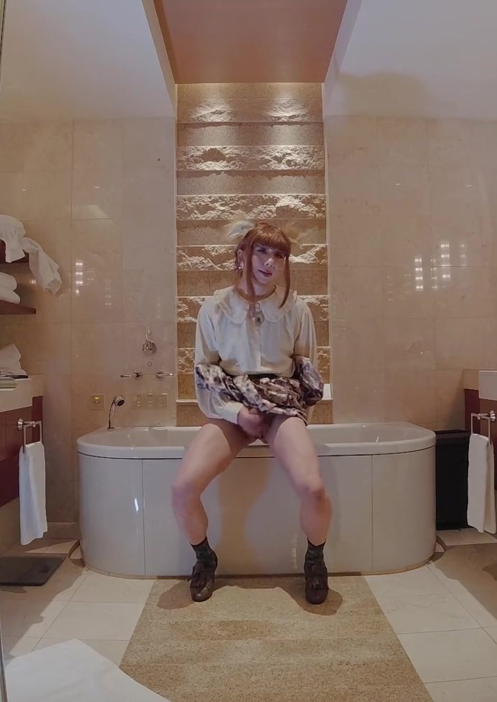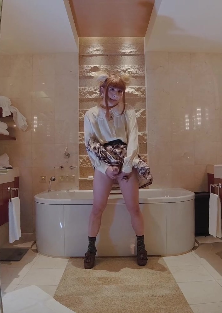 Chinese crossdresser with rabbit ear jizm in a luxury motel shower. cumdrop.
