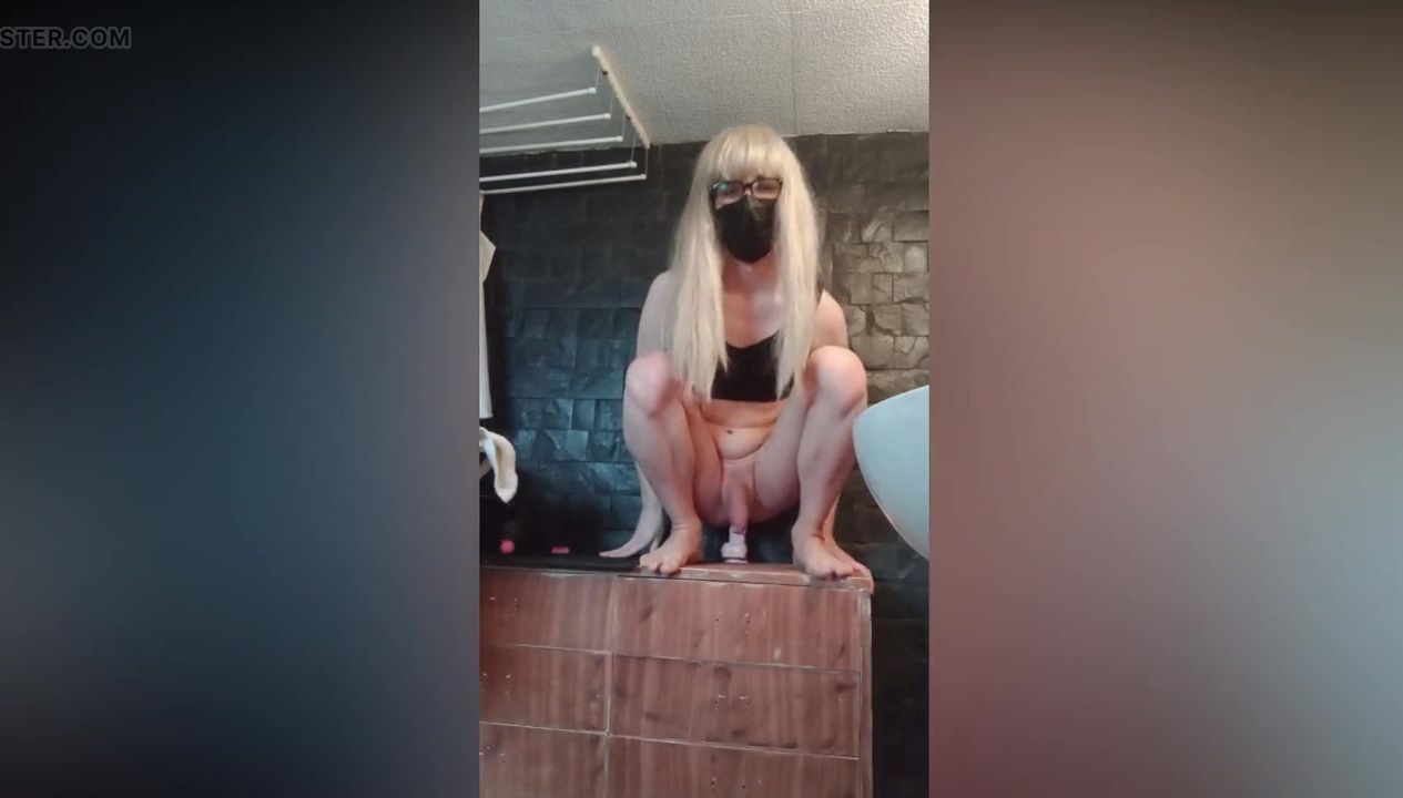 Sissy ejaculates from toying with her clitty and boinking her bum