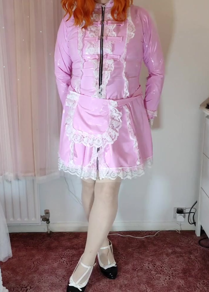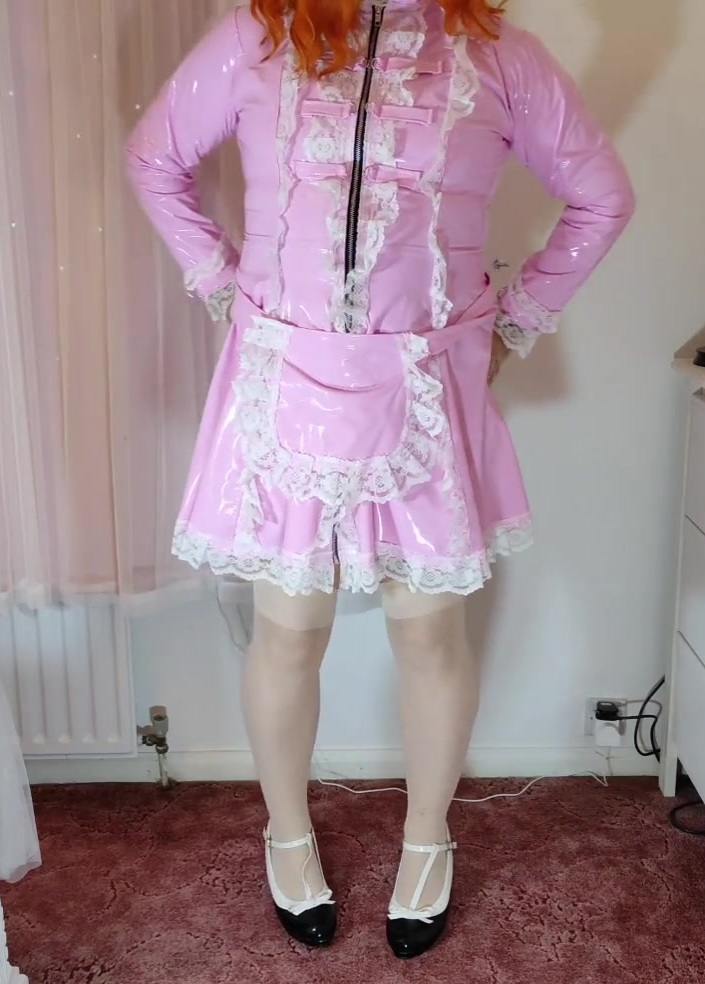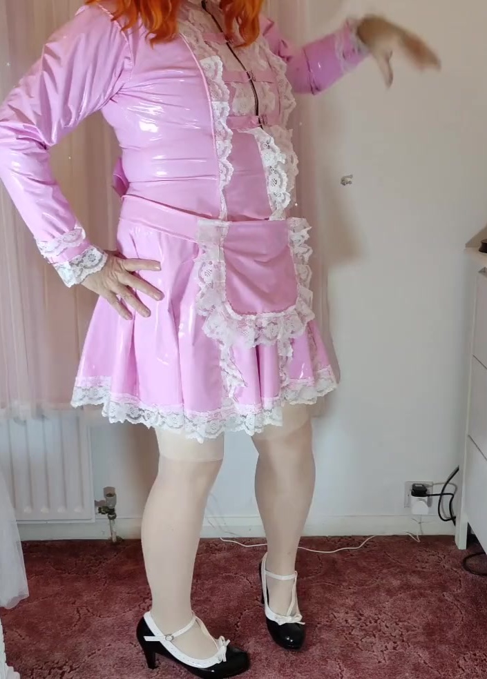Uk tv slut Nottstvslut pink pvc maid with stockings. Sissy cumdump slut