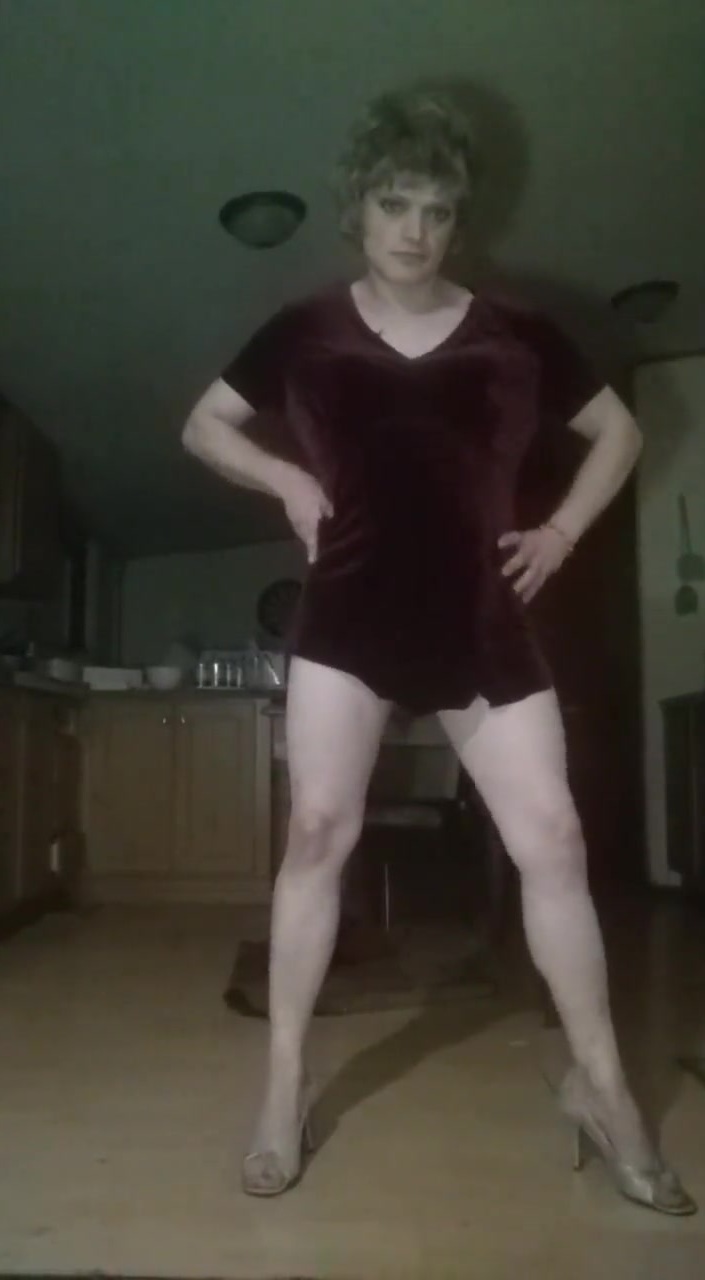 Here I'm in a red dress flashing my tight ass and juicy cock.
