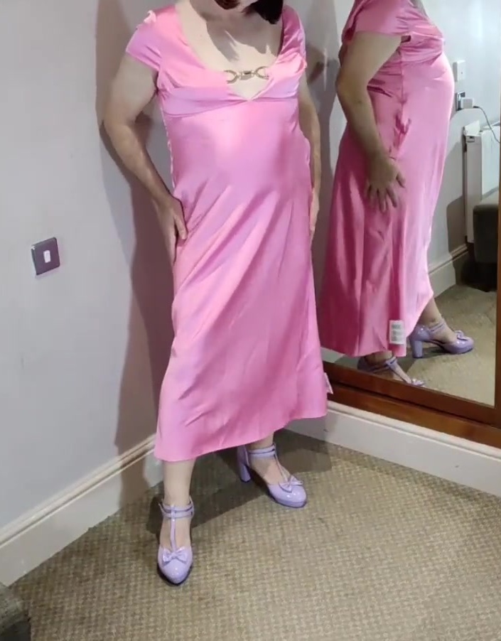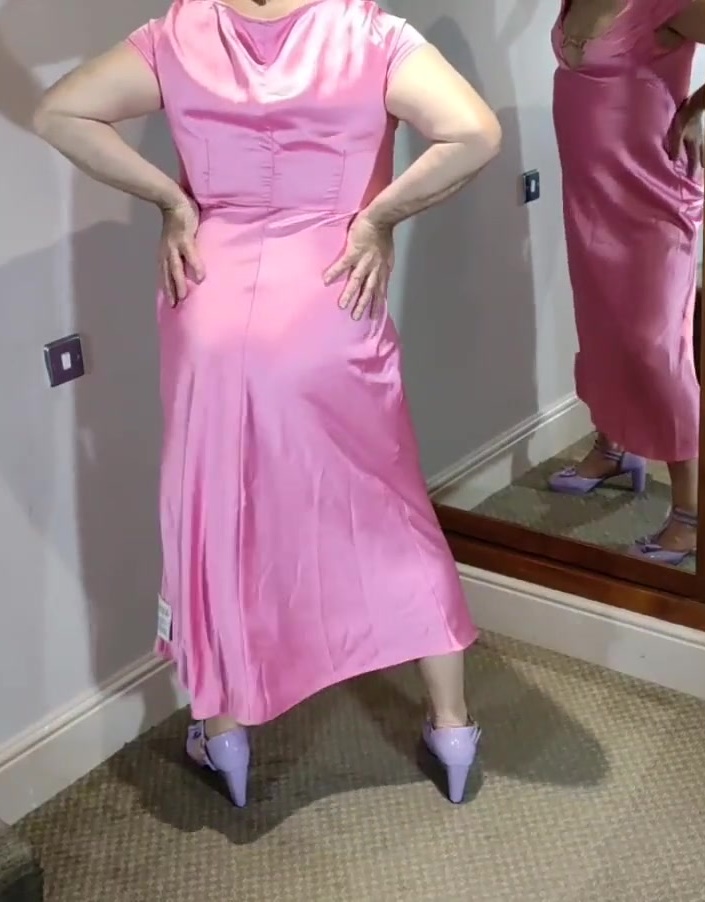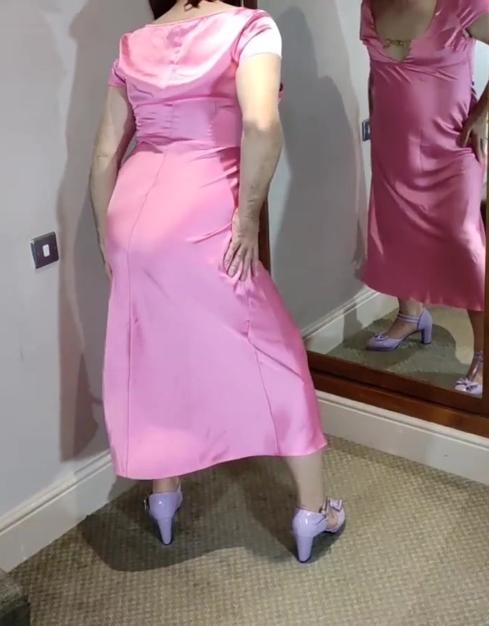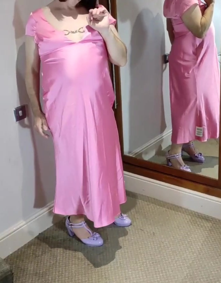 Uk tv slut Nottstvslut in long pink satin dress. Hot sissy slut.