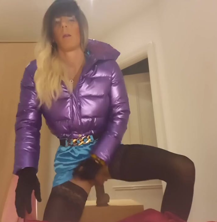 jess silk railing faux-cock in turquoise satin sundress and shining purple jacket with light-haired periwig