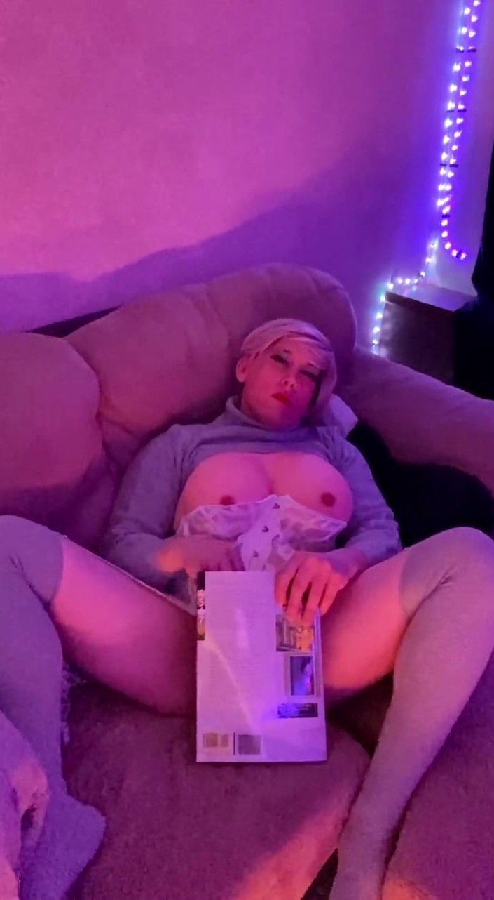 Looking like a naughty aunt, I take time and relax on my couch. wearing a comfy sweater corset and stockings I just can't help but to jerk my tranny cock off. barely any time passes as I get worked up