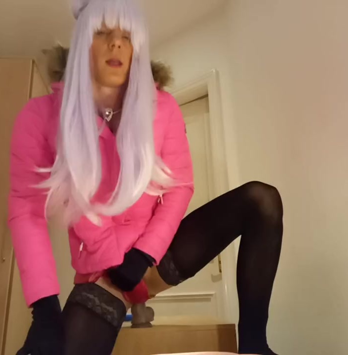 jess silk railing fuck stick in super-fucking-hot rosy satin sundress and molten pinkish jacket with long purple peruke
