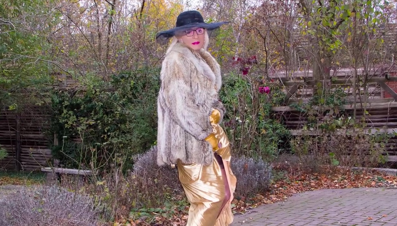 Chantal Fouet As A Golden Dame In A Pleated Satin Gown