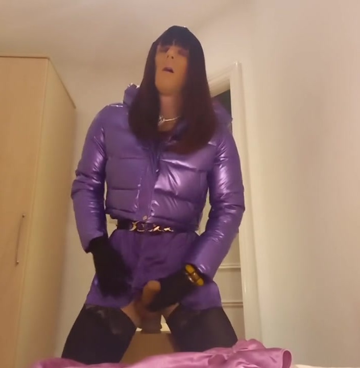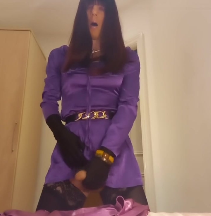 jess silk railing fuck stick in purple satin sundress and skiny purple jacket with crimson peruke