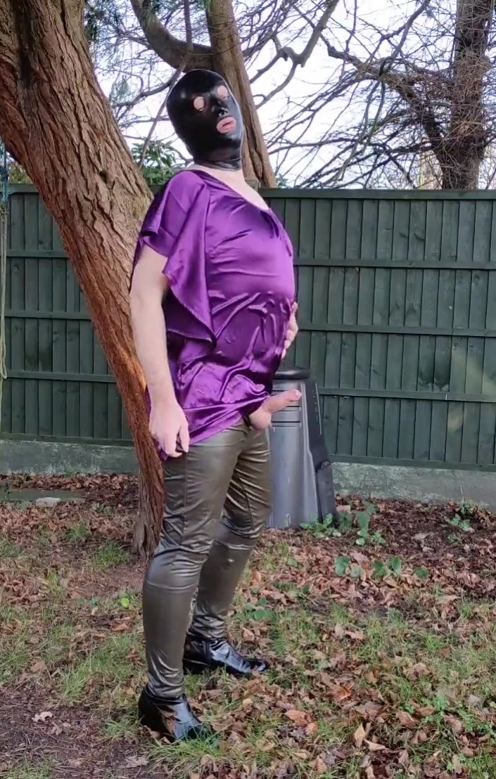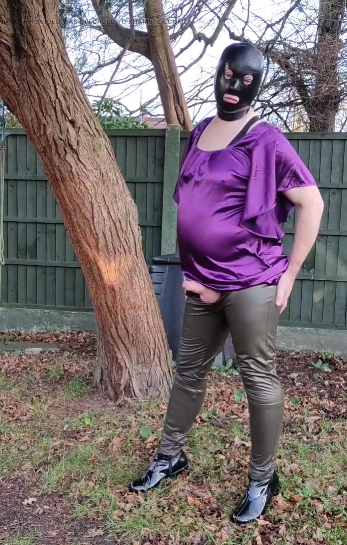Hot tv crossdresser hooded outdoor shiny tight leggings and satin. Dirty slut