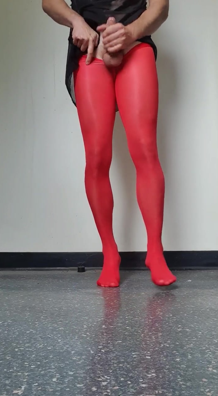 Mastubating in red nylon stocking huge cumshot