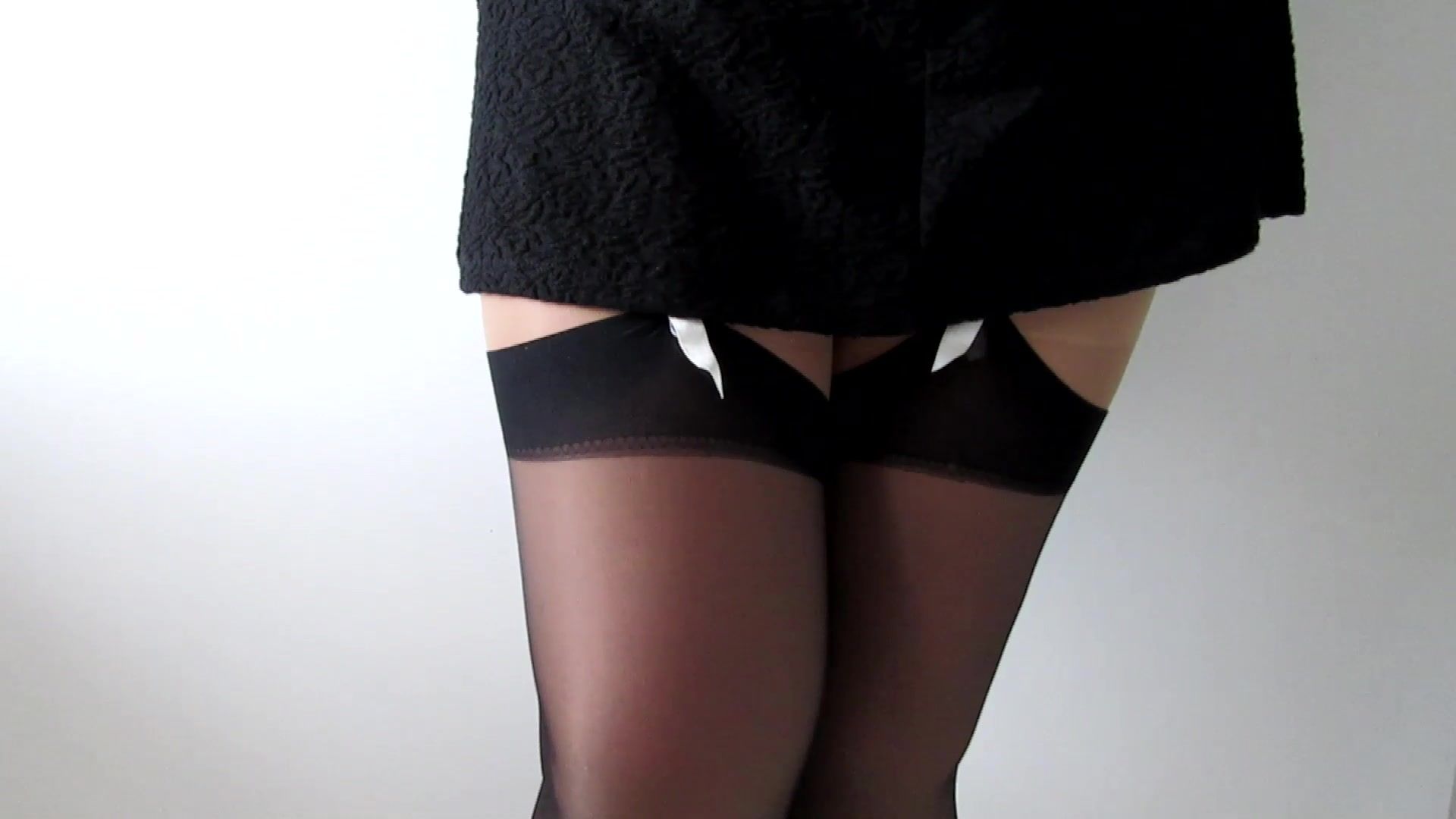 Pamala Dressed In Red Skirt Black Seamed stockings