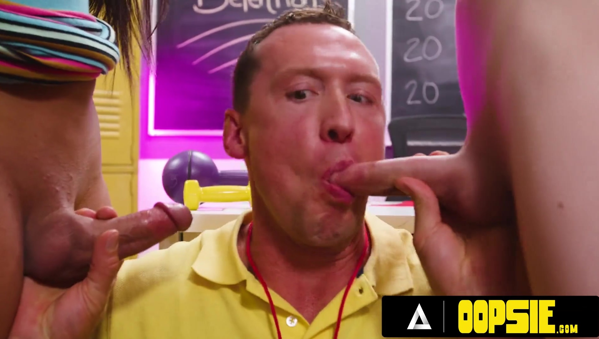 OOPSIE - School Coach Disciplines Huge-Titted Trans College Girls With SUPAH SUPER HOT Detention 3Some!