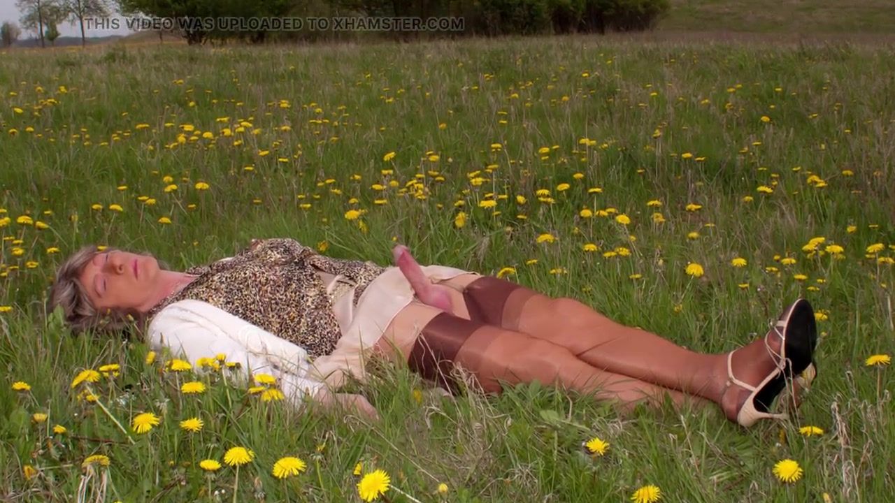 outdoor cumshot in a silk skirt and nylon stockings